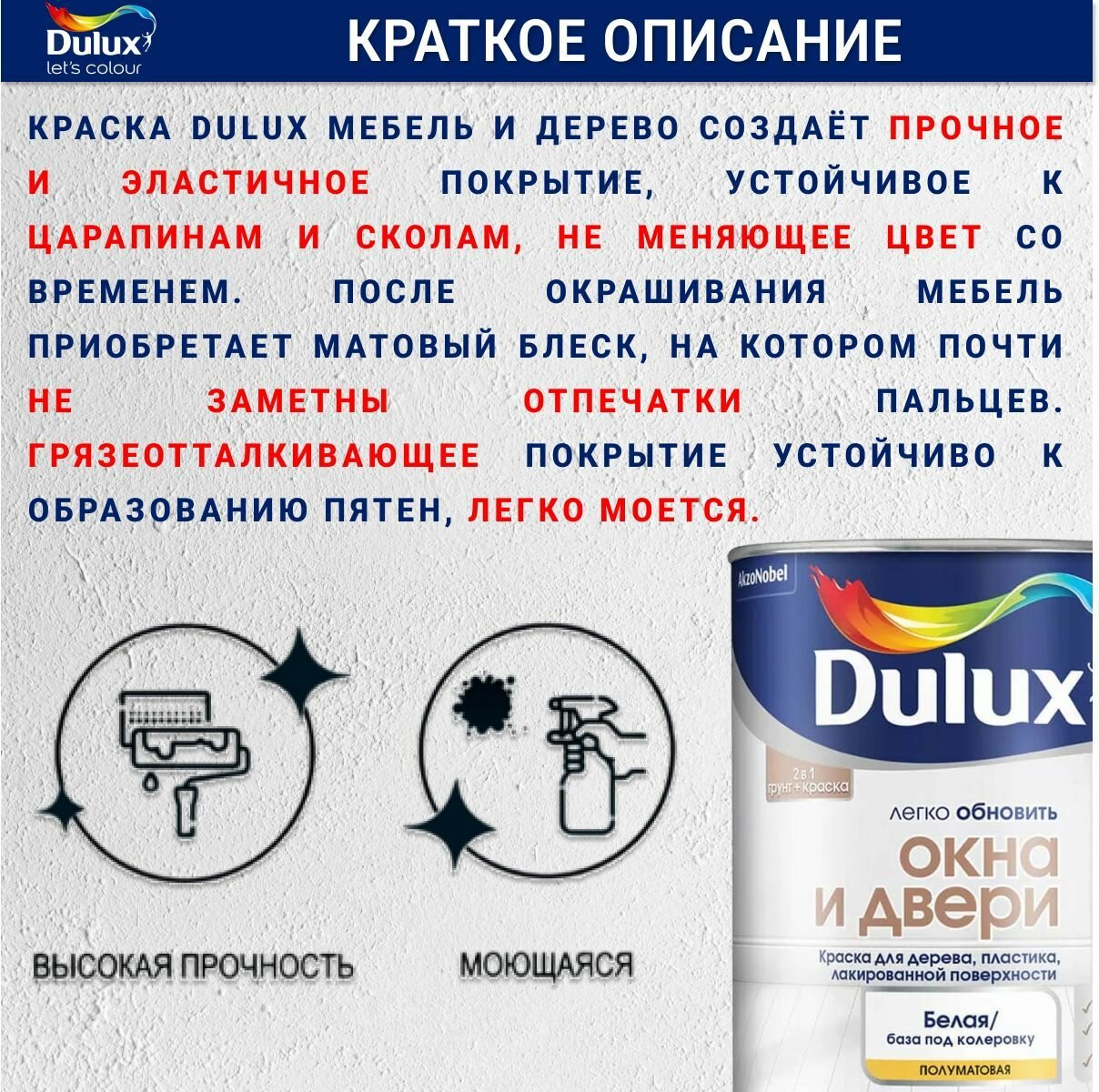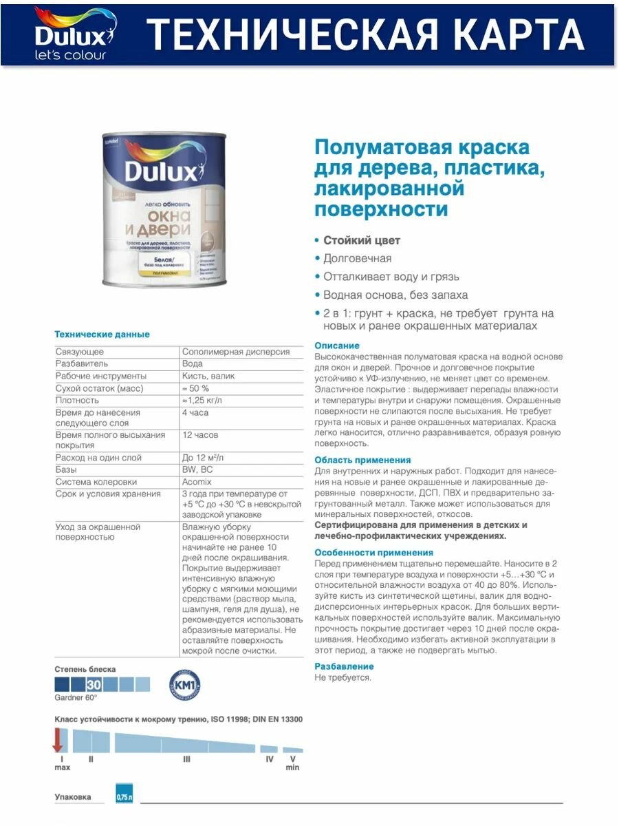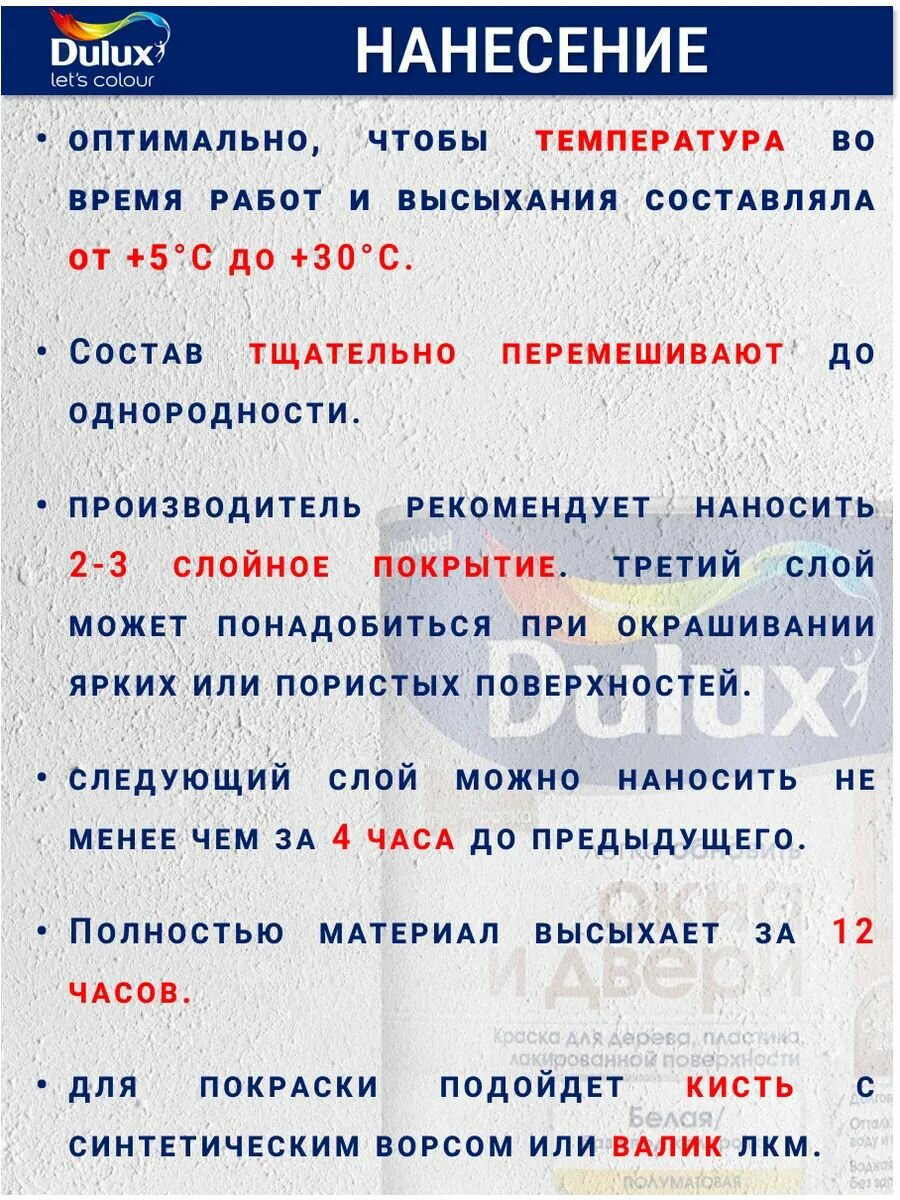 Краска для дерева и пластика Dulux полуматовая износостойкая белая 0.75 л / Дулюкс Окна и Двери интересное: