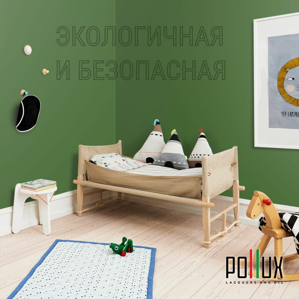 Краска моющаяся интерьерная для стен и потолков, Pollux INTERIOR без запаха, быстросохнущая, акриловая, матовое покрытие, цвет NCS S 5540-G30Y, 1л.