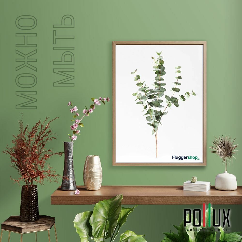 Краска моющаяся интерьерная для стен и потолков, Pollux INTERIOR без запаха, быстросохнущая, акриловая, матовое покрытие, цвет NCS S 5540-G30Y, 1л.