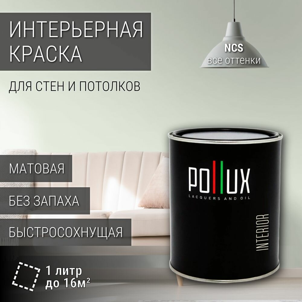 Краска моющаяся интерьерная для стен и потолков, Pollux INTERIOR без запаха, быстросохнущая, акриловая, матовое покрытие, цвет NCS S 2060-G30Y, 1л.