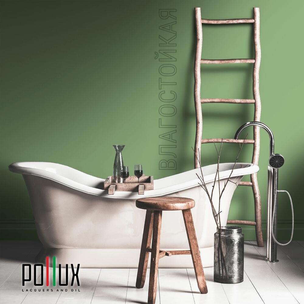 Краска моющаяся интерьерная для стен и потолков, Pollux INTERIOR без запаха, быстросохнущая, акриловая, матовое покрытие, цвет NCS S 8010-G30Y, 1л.