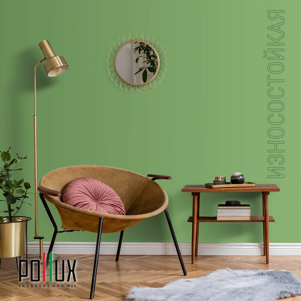 Краска моющаяся интерьерная для стен и потолков, Pollux INTERIOR без запаха, быстросохнущая, акриловая, матовое покрытие, цвет NCS S 6010-G30Y, 1л.