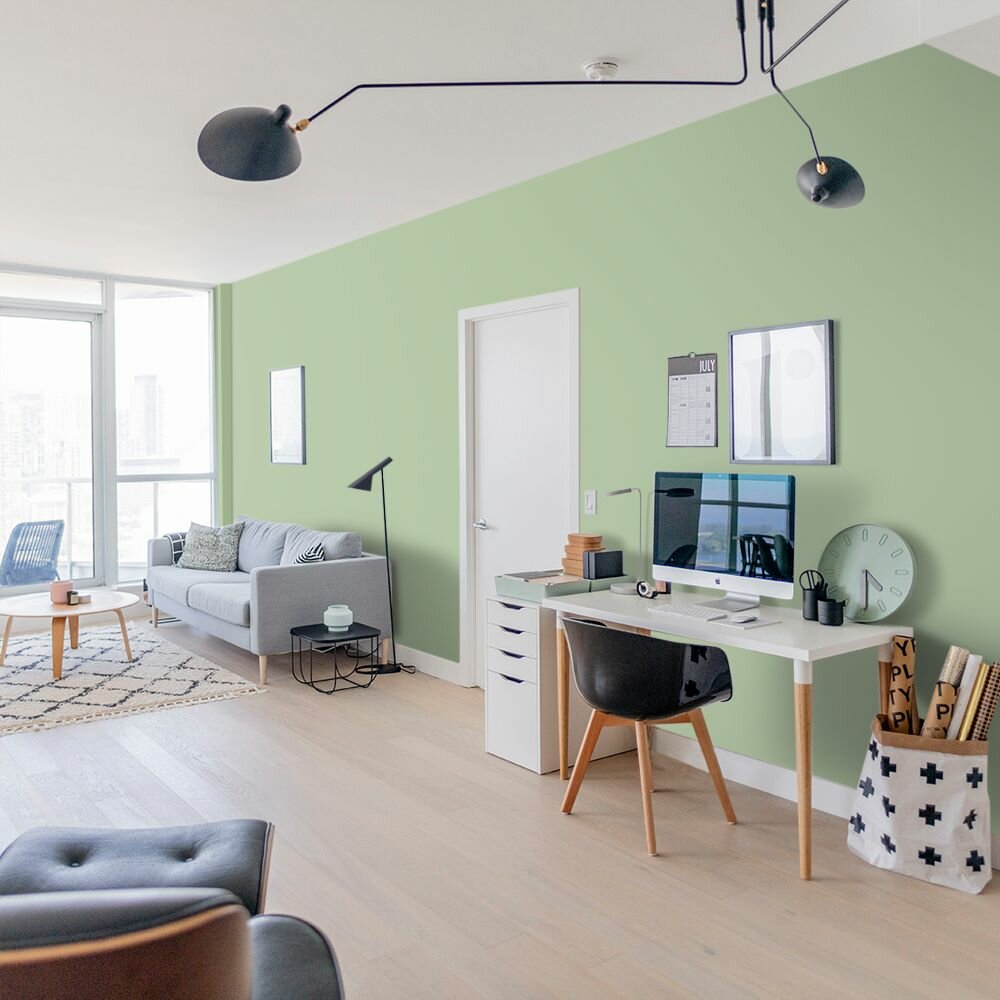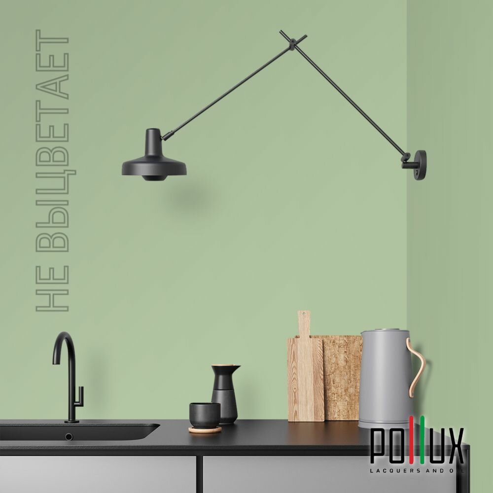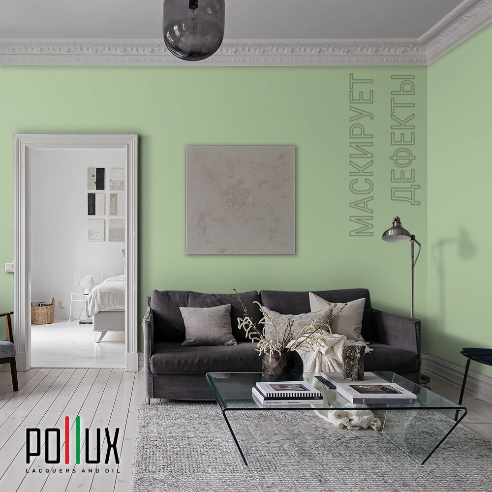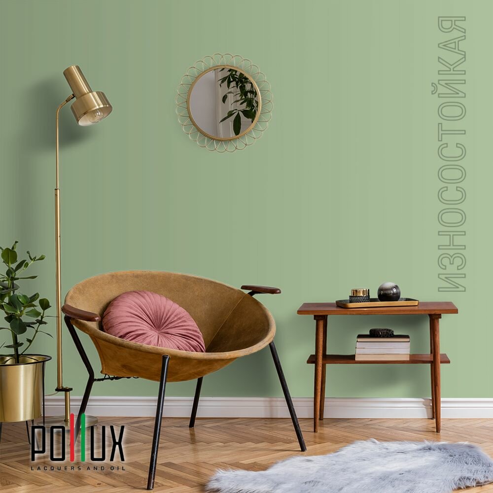 Краска моющаяся интерьерная для стен и потолков, Pollux INTERIOR без запаха, быстросохнущая, акриловая, матовое покрытие, цвет NCS S 6030-G30Y, 1л.