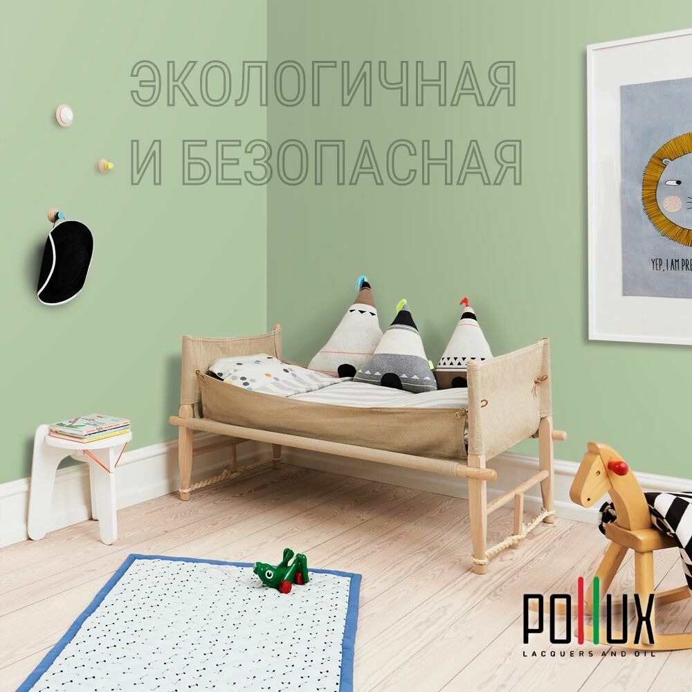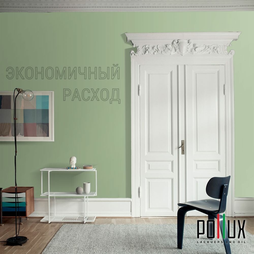 Краска моющаяся интерьерная для стен и потолков, Pollux INTERIOR без запаха, быстросохнущая, акриловая, матовое покрытие, цвет NCS S 5540-G30Y, 1л.