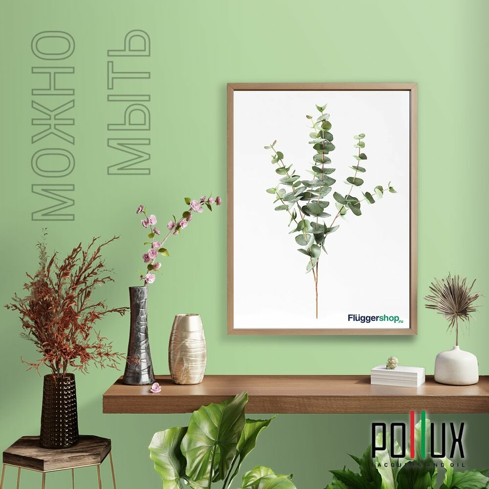 Краска моющаяся интерьерная для стен и потолков, Pollux INTERIOR без запаха, быстросохнущая, акриловая, матовое покрытие, цвет NCS S 5540-G30Y, 1л.