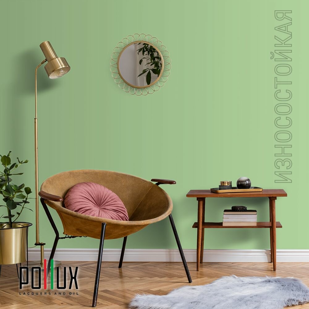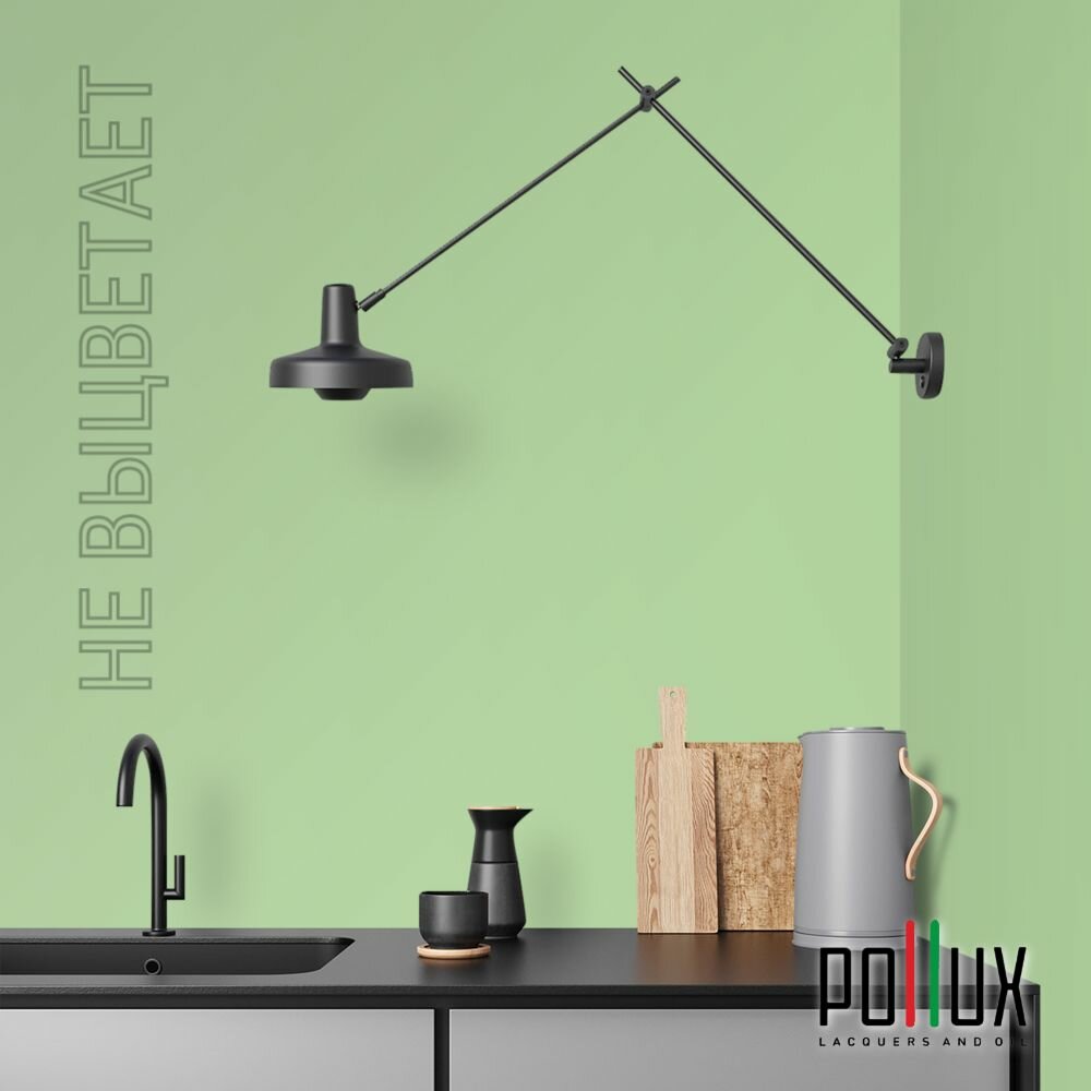 Краска моющаяся интерьерная для стен и потолков, Pollux INTERIOR без запаха, быстросохнущая, акриловая, матовое покрытие, цвет NCS S 6030-G30Y, 1л.