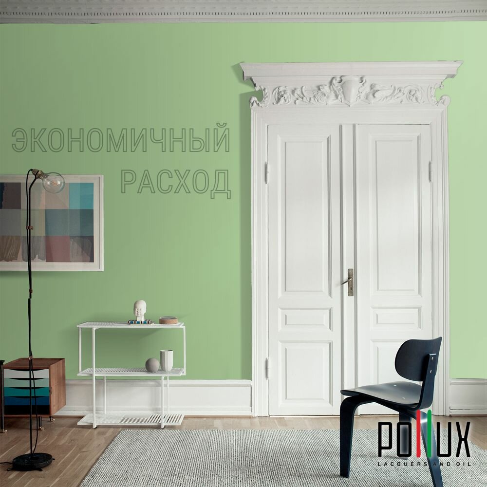 Краска моющаяся интерьерная для стен и потолков, Pollux INTERIOR без запаха, быстросохнущая, акриловая, матовое покрытие, цвет NCS S 4030-G30Y, 1л.