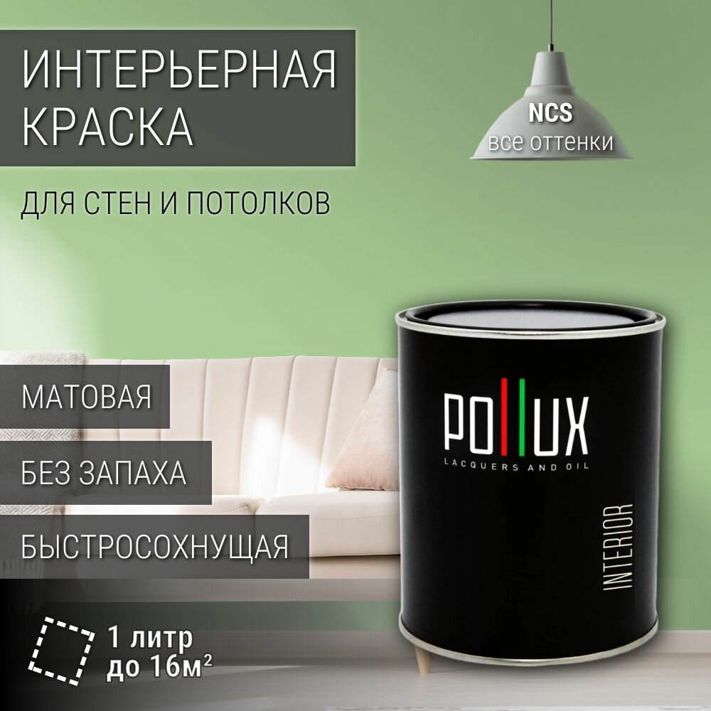 Краска моющаяся интерьерная для стен и потолков, Pollux INTERIOR без запаха, быстросохнущая, акриловая, матовое покрытие, цвет NCS S 1060-G30Y, 1л.