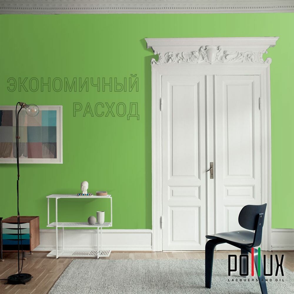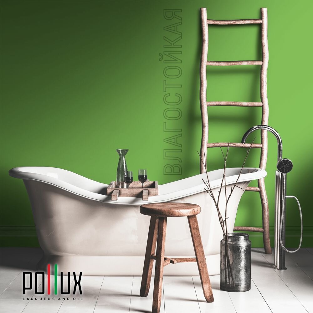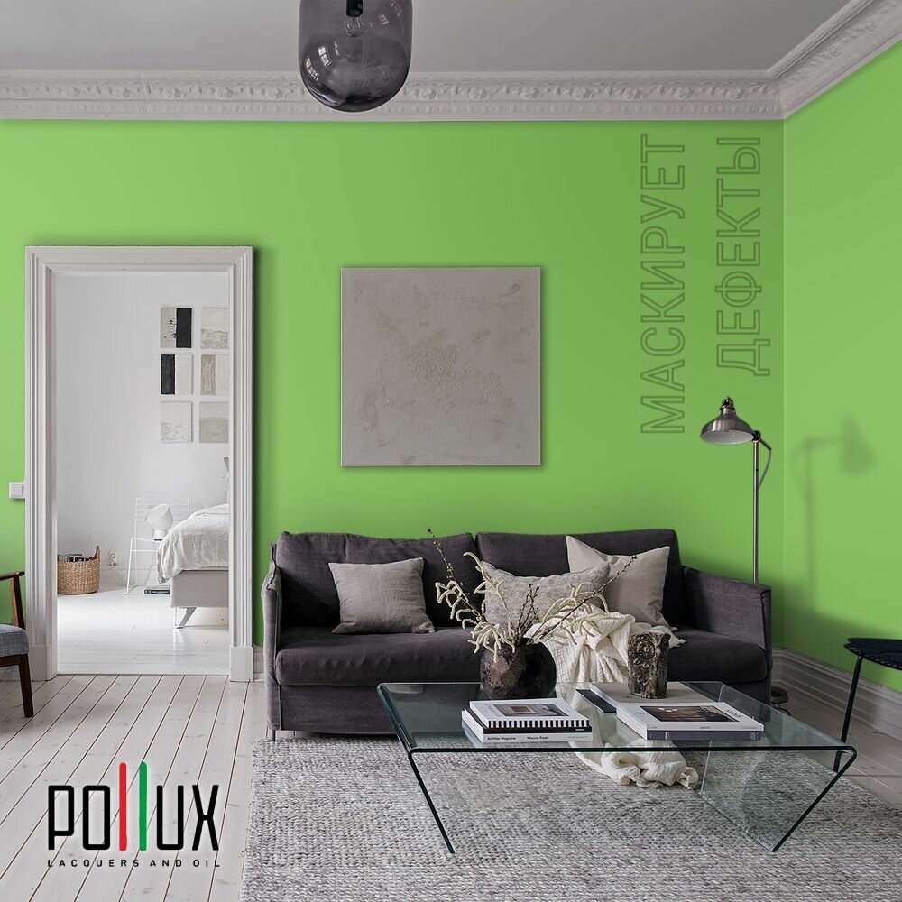 Краска моющаяся интерьерная для стен и потолков, Pollux INTERIOR без запаха, быстросохнущая, акриловая, матовое покрытие, цвет NCS S 6030-G30Y, 1л.