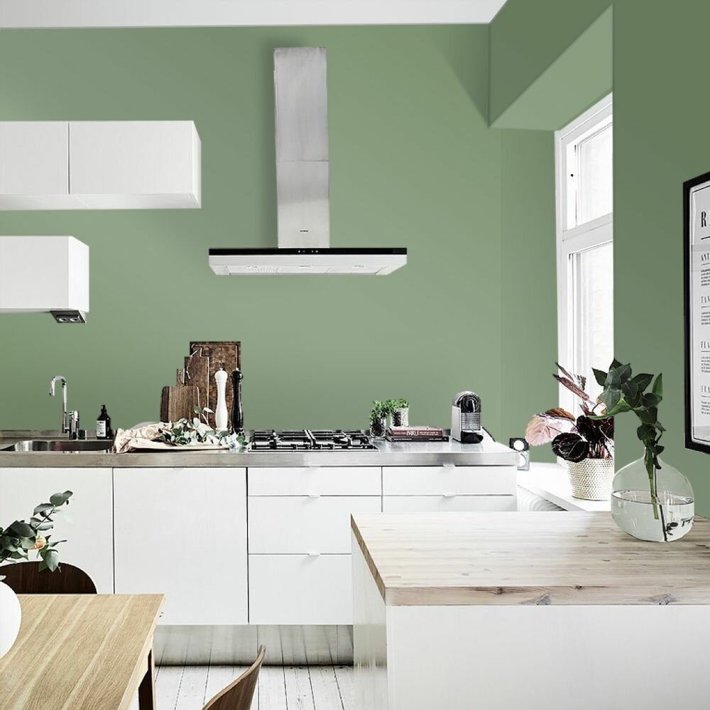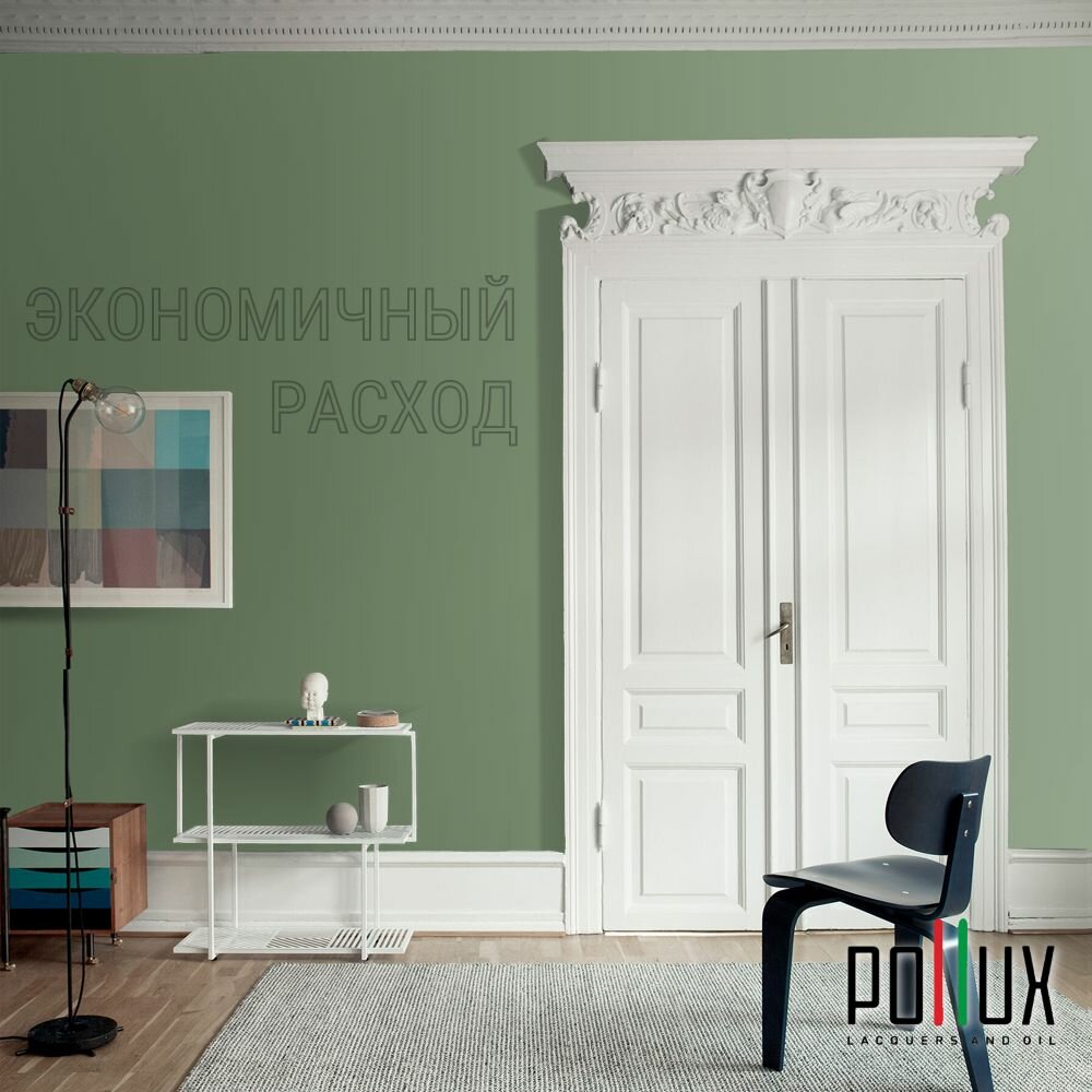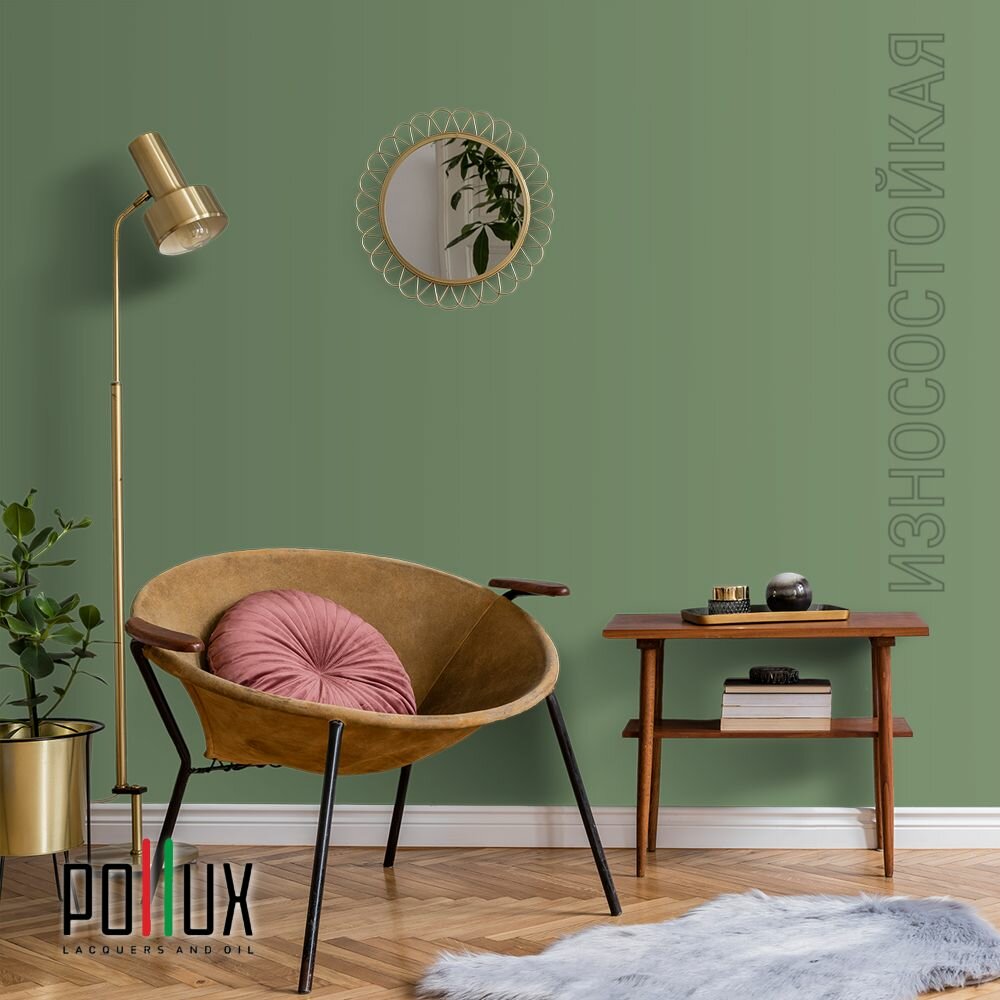 Краска моющаяся интерьерная для стен и потолков, Pollux INTERIOR без запаха, быстросохнущая, акриловая, матовое покрытие, цвет NCS S 4050-G30Y, 1л.