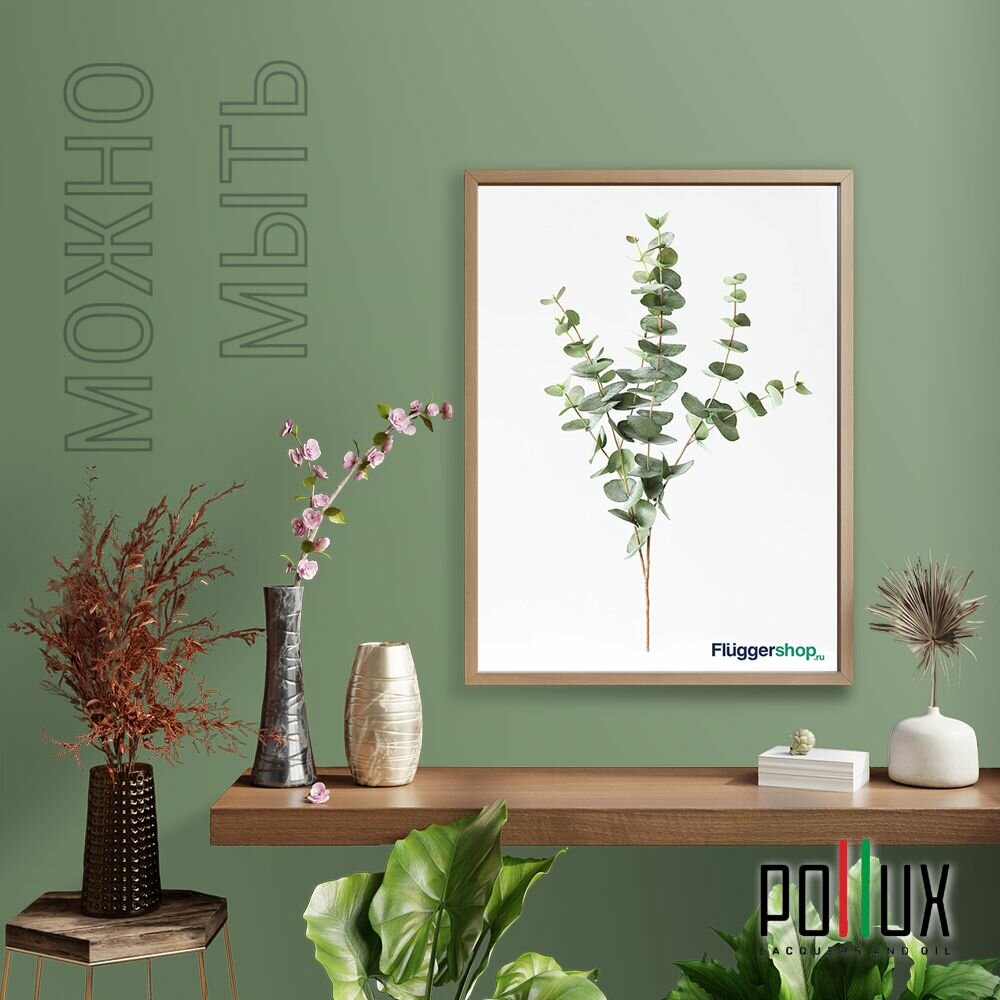 Краска моющаяся интерьерная для стен и потолков, Pollux INTERIOR без запаха, быстросохнущая, акриловая, матовое покрытие, цвет NCS S 5540-G30Y, 1л.