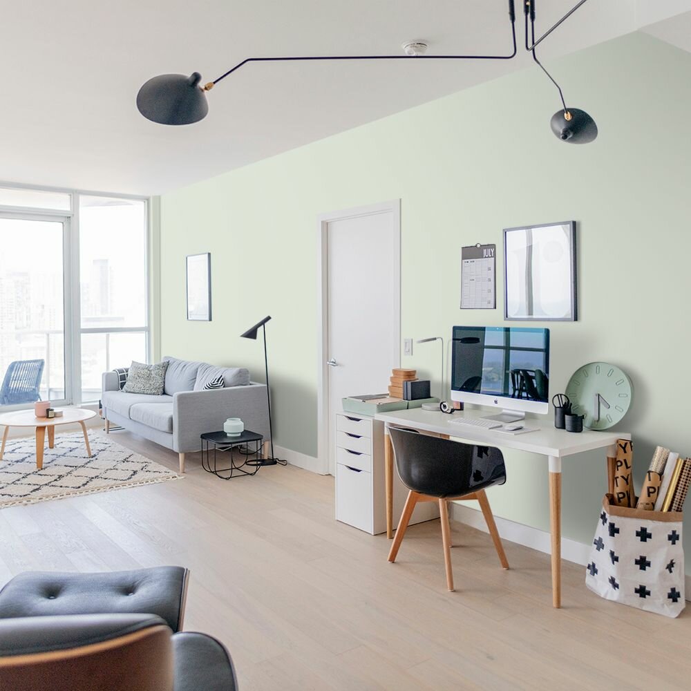 Краска моющаяся интерьерная для стен и потолков, Pollux INTERIOR без запаха, быстросохнущая, акриловая, матовое покрытие, цвет NCS S 0510-G30Y, 1л.