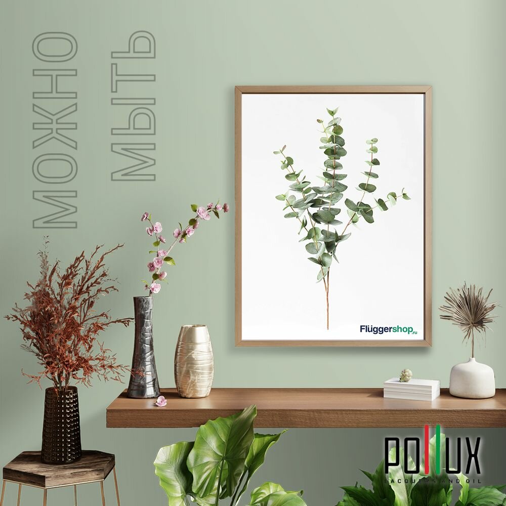 Краска моющаяся интерьерная для стен и потолков, Pollux INTERIOR без запаха, быстросохнущая, акриловая, матовое покрытие, цвет NCS S 5540-G30Y, 1л.