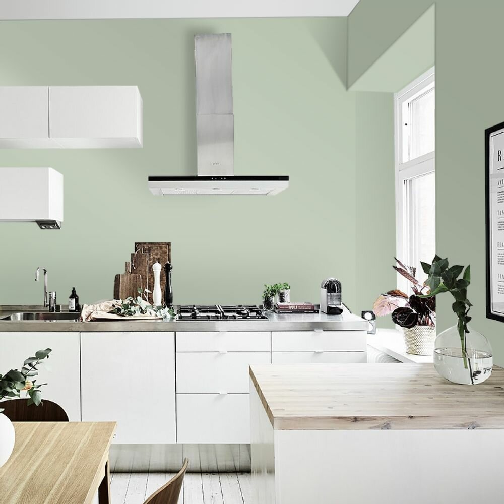 Краска моющаяся интерьерная для стен и потолков, Pollux INTERIOR без запаха, быстросохнущая, акриловая, матовое покрытие, цвет NCS S 2040-G30Y, 1л.