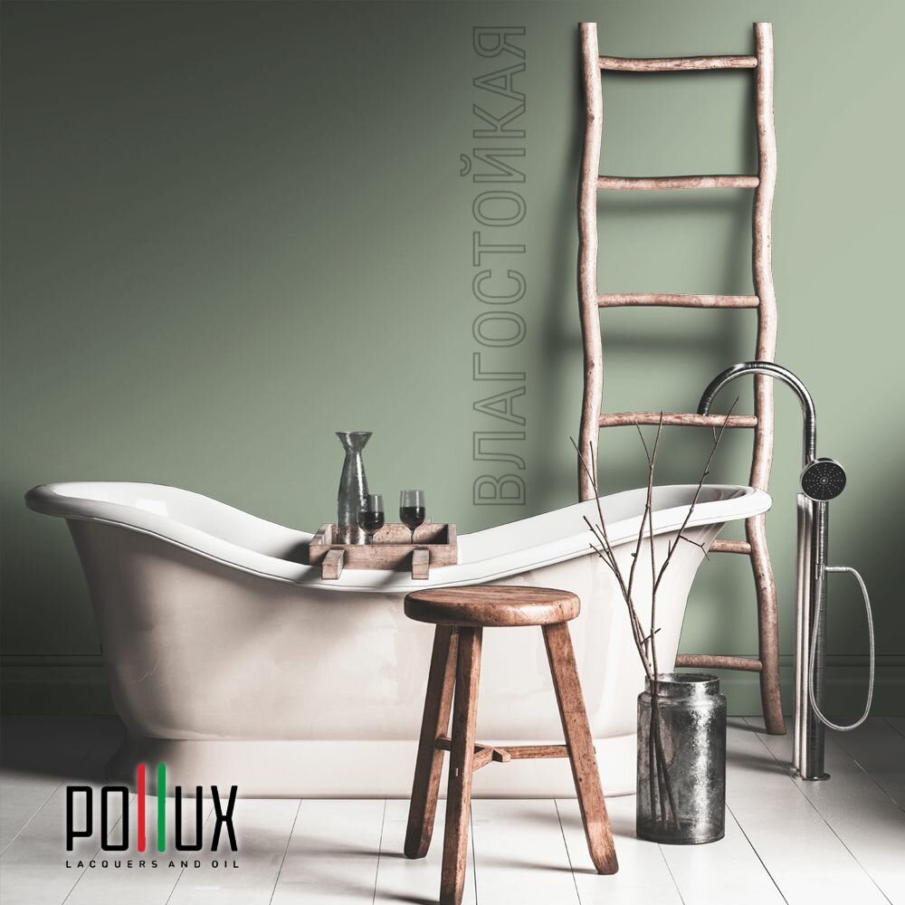 Краска моющаяся интерьерная для стен и потолков, Pollux INTERIOR без запаха, быстросохнущая, акриловая, матовое покрытие, цвет NCS S 8010-G30Y, 1л.