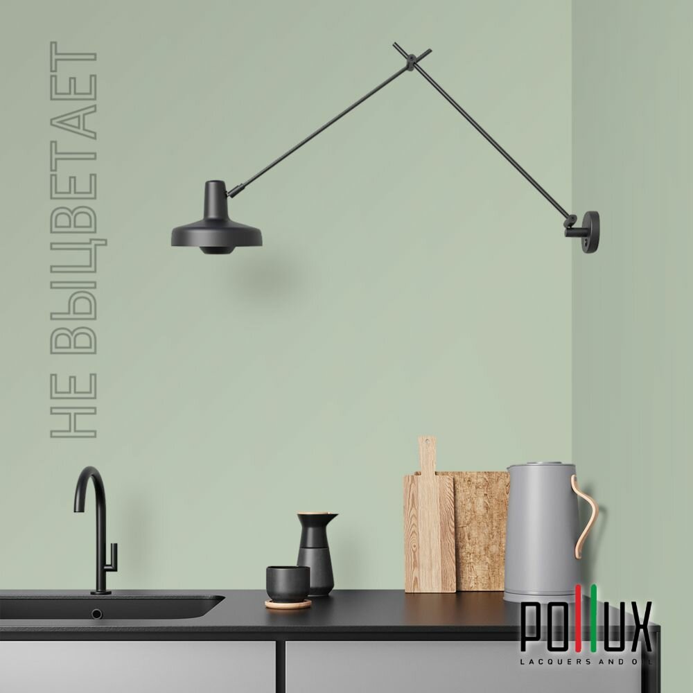 Краска моющаяся интерьерная для стен и потолков, Pollux INTERIOR без запаха, быстросохнущая, акриловая, матовое покрытие, цвет NCS S 6030-G30Y, 1л.