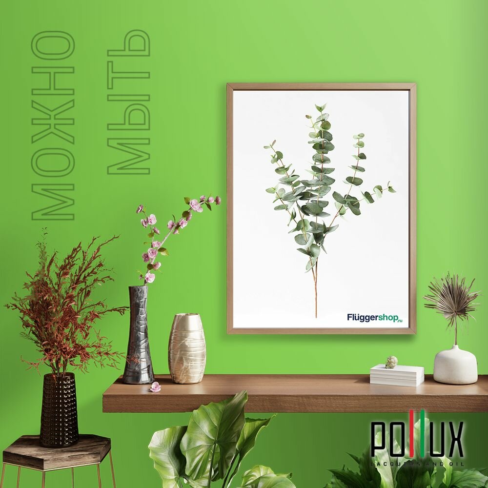 Краска моющаяся интерьерная для стен и потолков, Pollux INTERIOR без запаха, быстросохнущая, акриловая, матовое покрытие, цвет NCS S 6030-G30Y, 1л.