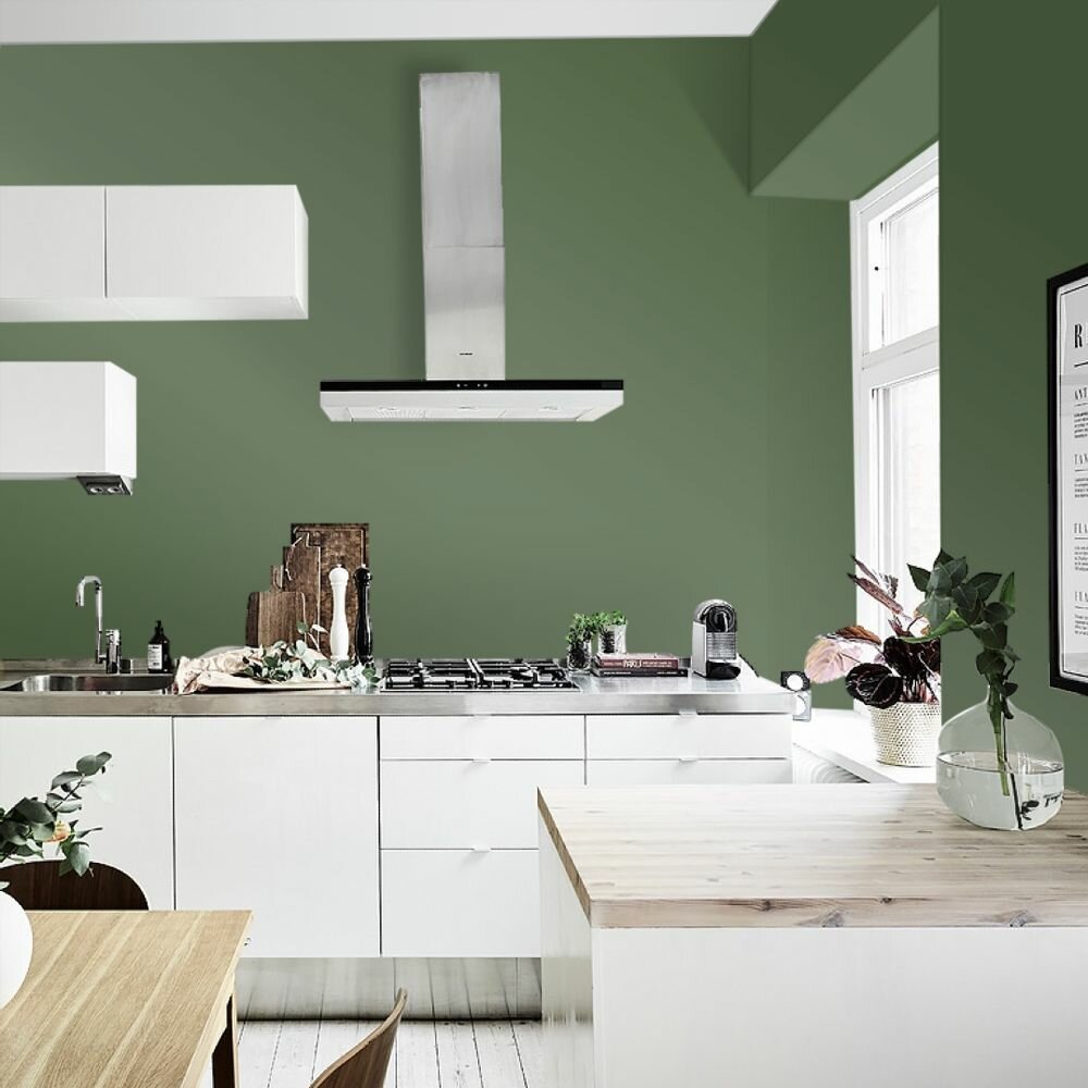 Краска моющаяся интерьерная для стен и потолков, Pollux INTERIOR без запаха, быстросохнущая, акриловая, матовое покрытие, цвет NCS S 4050-G30Y, 1л.