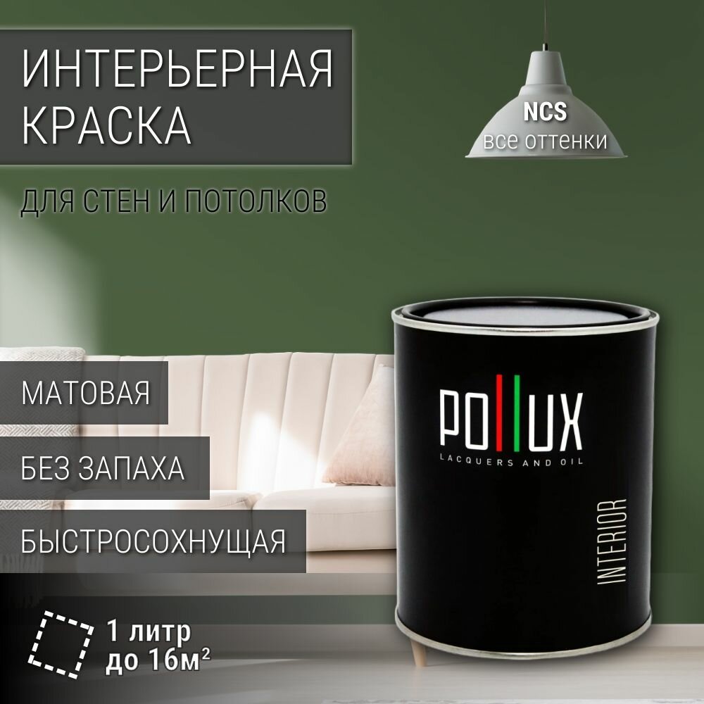 Краска моющаяся интерьерная для стен и потолков, Pollux INTERIOR без запаха, быстросохнущая, акриловая, матовое покрытие, цвет NCS S 8010-G30Y, 1л.