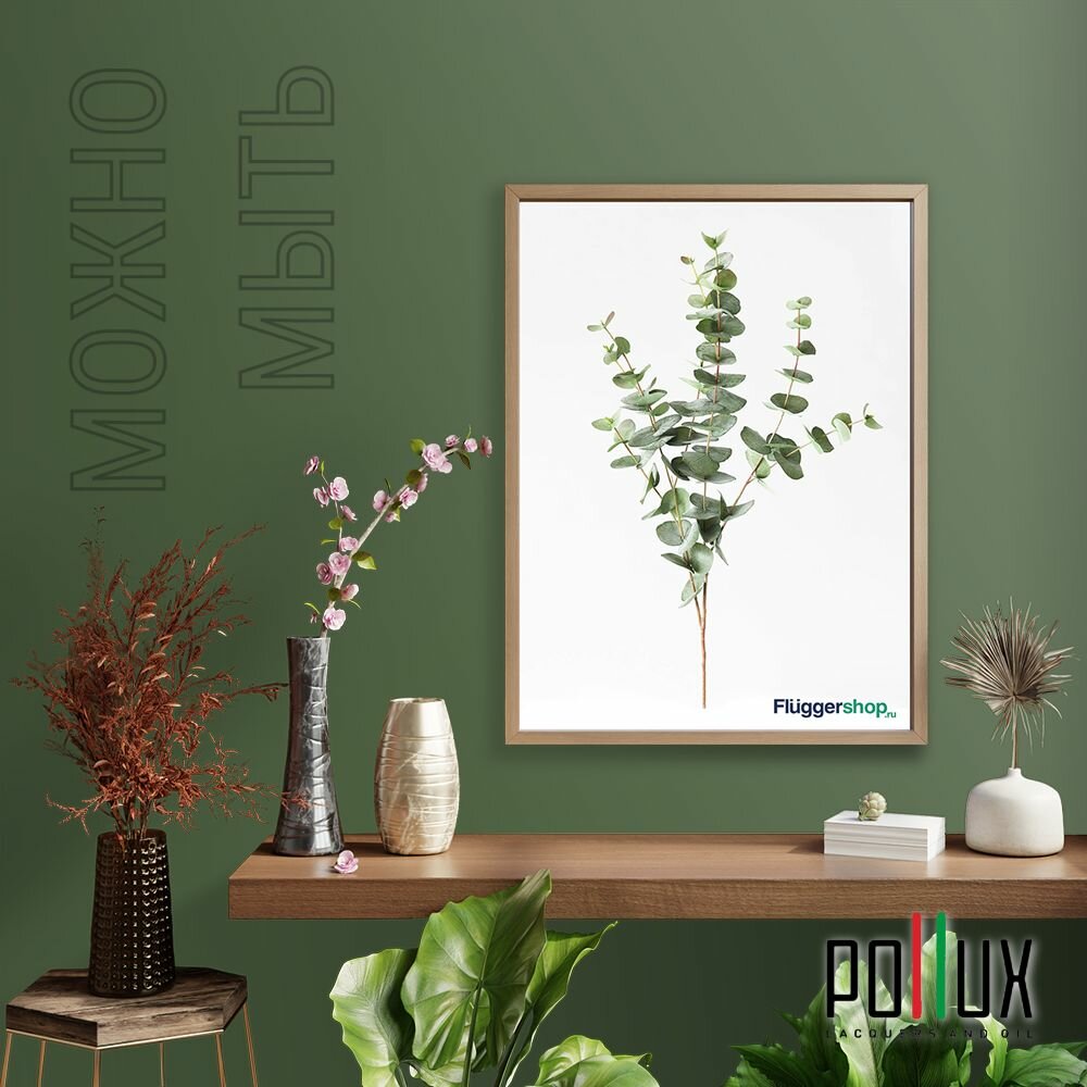 Краска моющаяся интерьерная для стен и потолков, Pollux INTERIOR без запаха, быстросохнущая, акриловая, матовое покрытие, цвет NCS S 5540-G30Y, 1л.