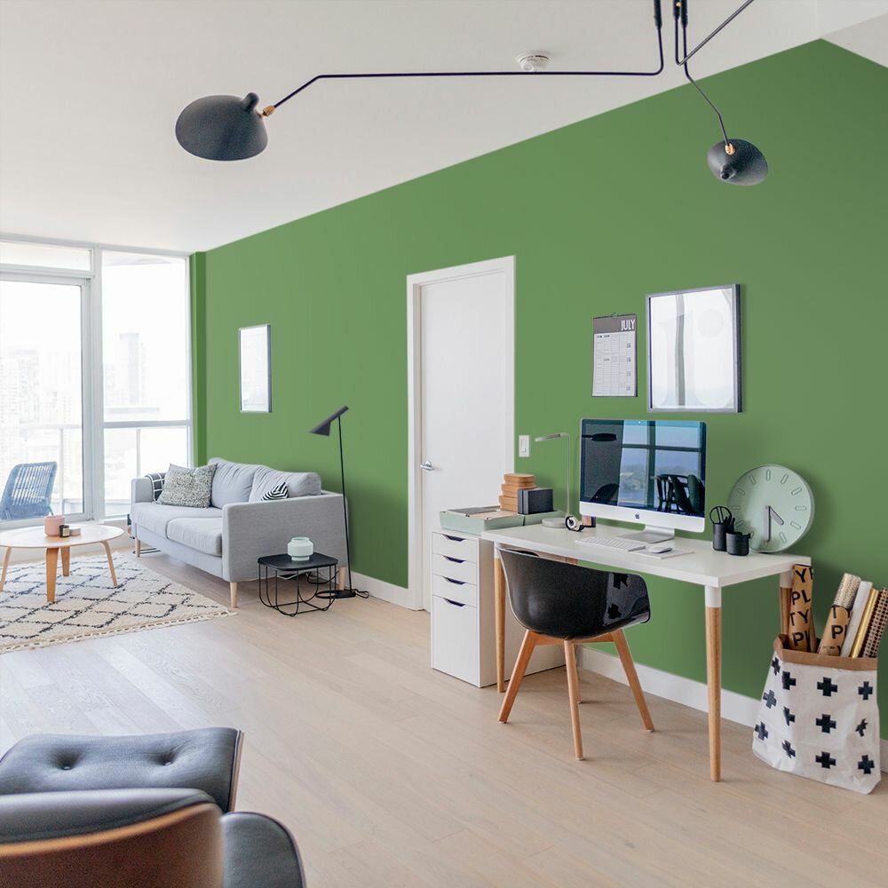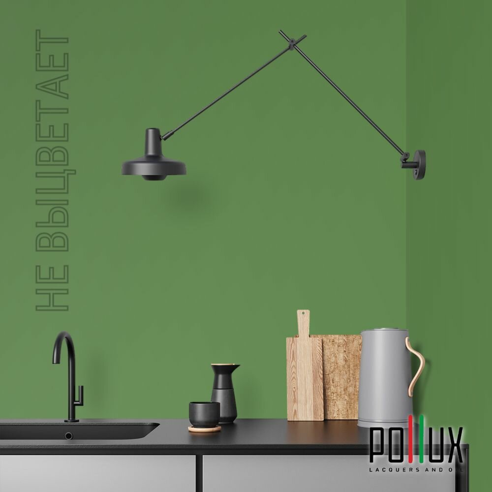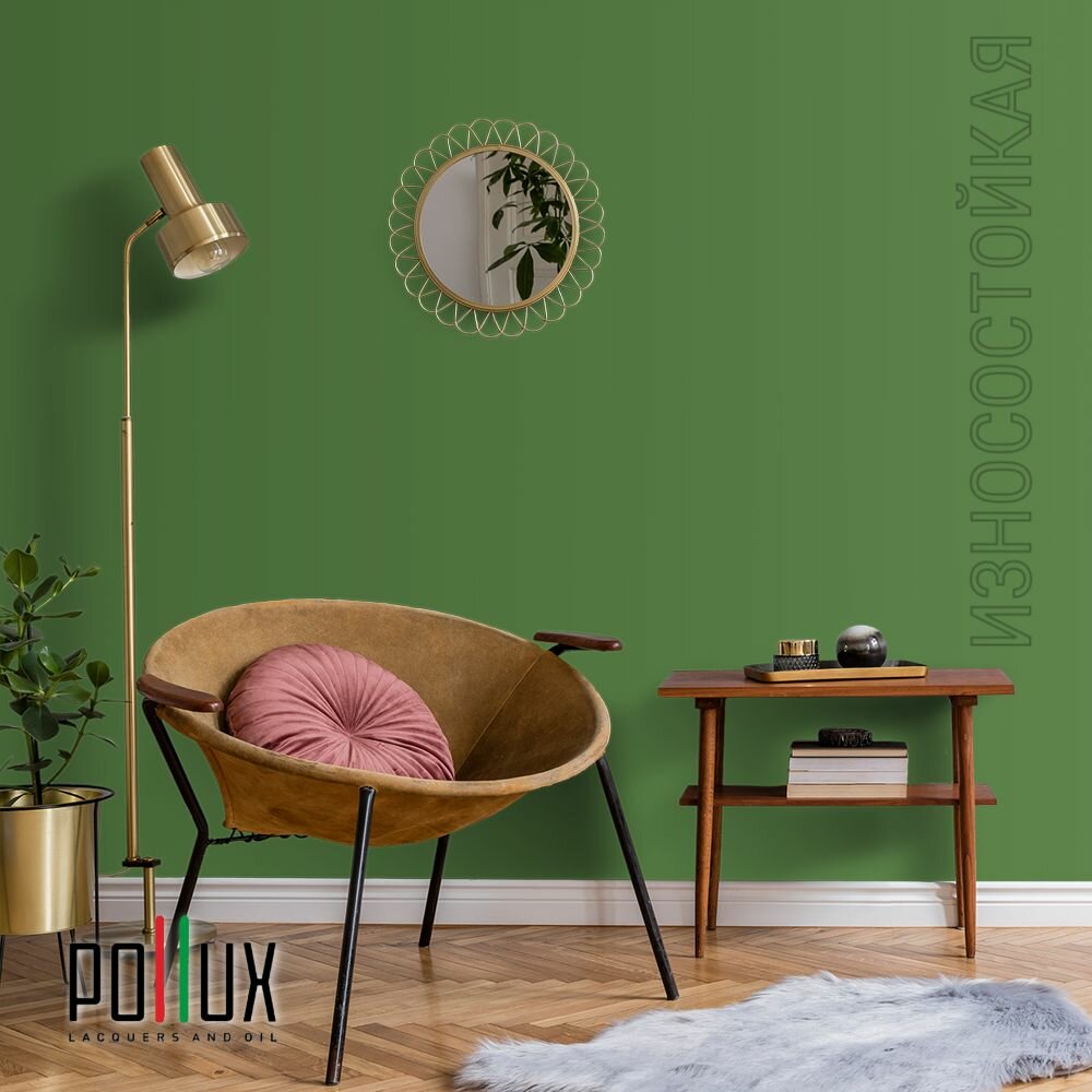 Краска моющаяся интерьерная для стен и потолков, Pollux INTERIOR без запаха, быстросохнущая, акриловая, матовое покрытие, цвет NCS S 6030-G30Y, 1л.