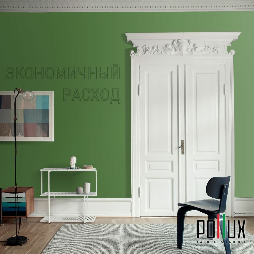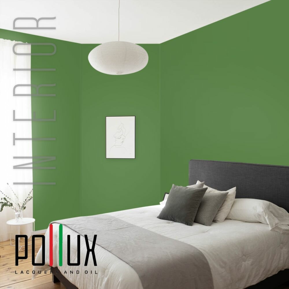 Краска моющаяся интерьерная для стен и потолков, Pollux INTERIOR без запаха, быстросохнущая, акриловая, матовое покрытие, цвет NCS S 4050-G30Y, 1л.
