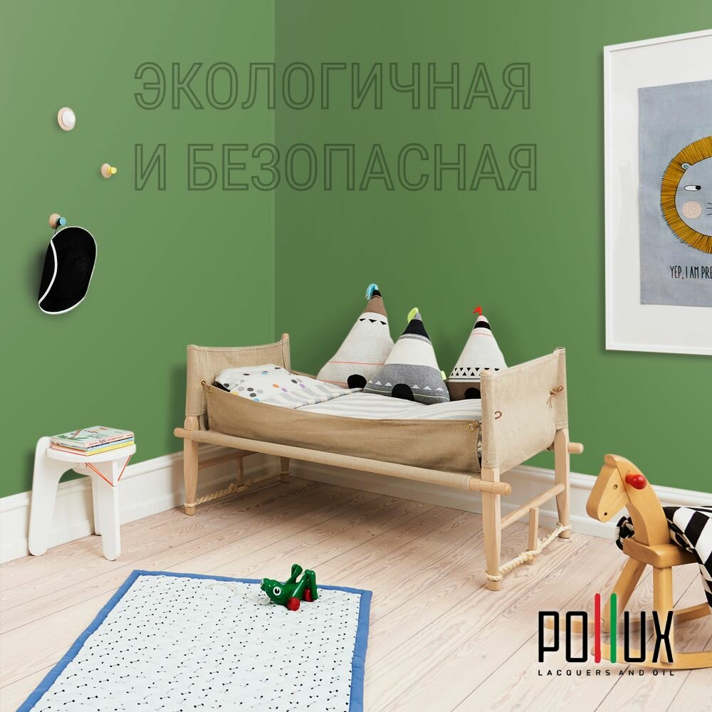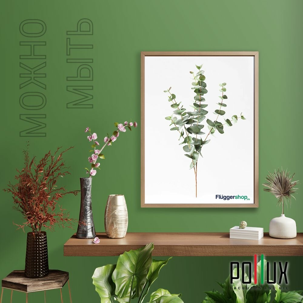 Краска моющаяся интерьерная для стен и потолков, Pollux INTERIOR без запаха, быстросохнущая, акриловая, матовое покрытие, цвет NCS S 5540-G30Y, 1л.