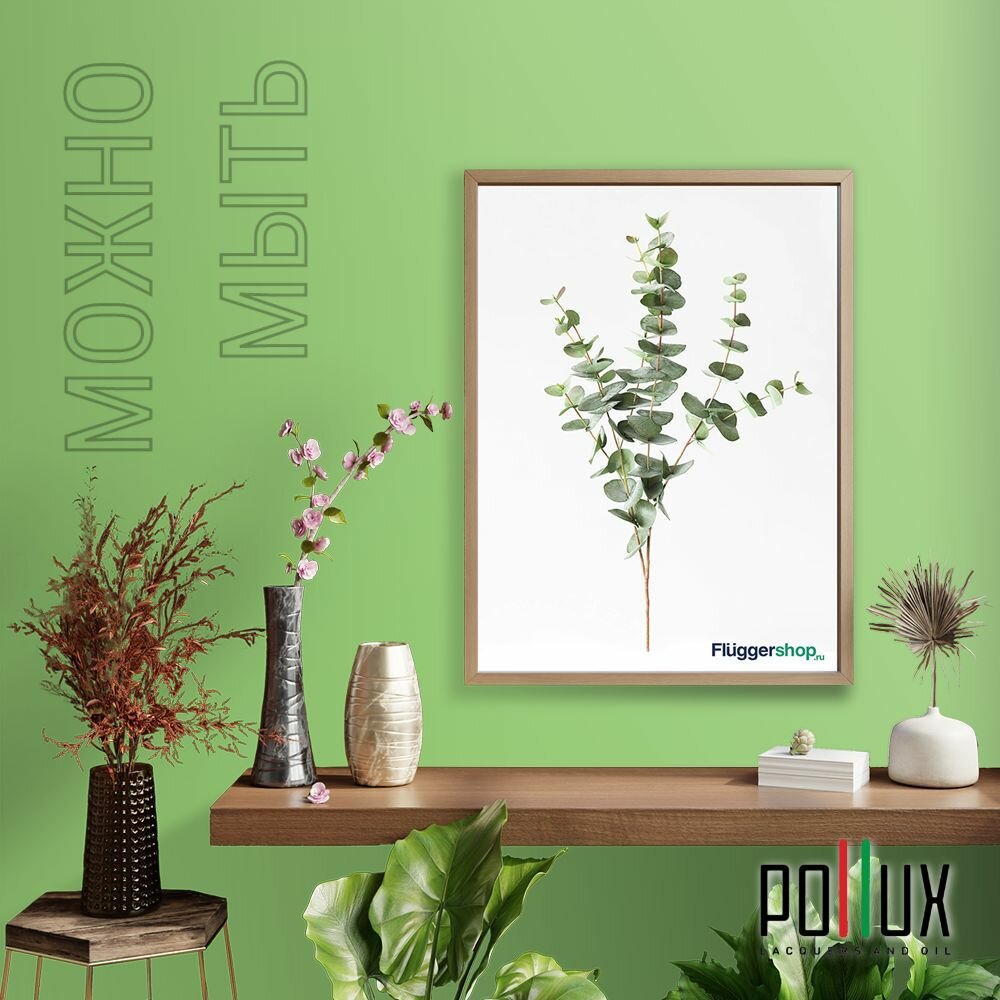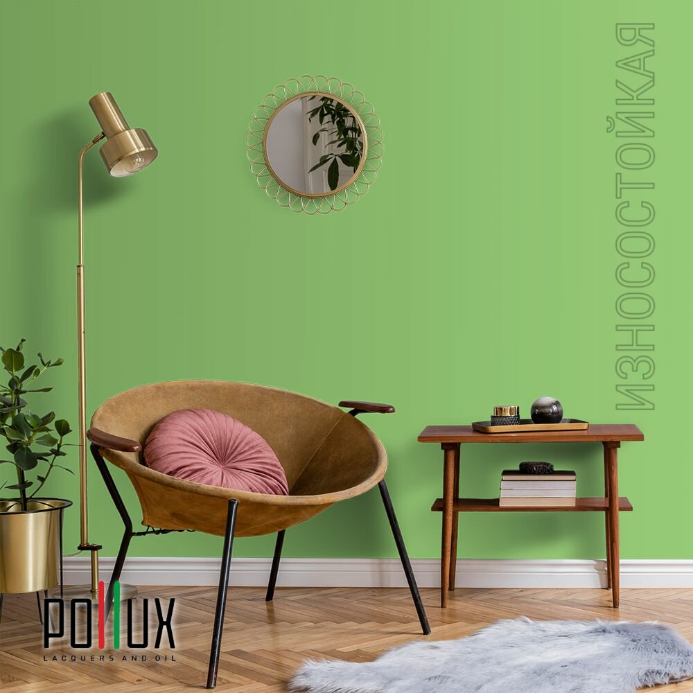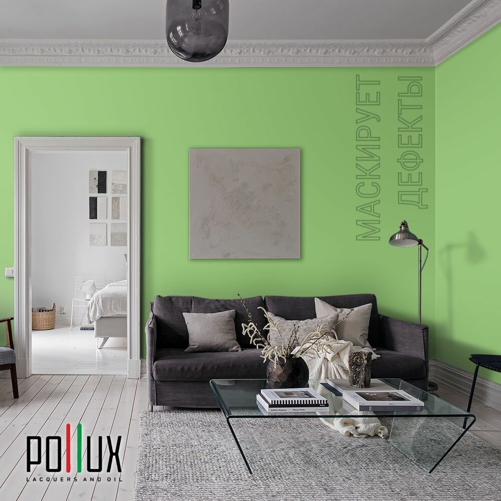 Краска моющаяся интерьерная для стен и потолков, Pollux INTERIOR без запаха, быстросохнущая, акриловая, матовое покрытие, цвет NCS S 6030-G30Y, 1л.