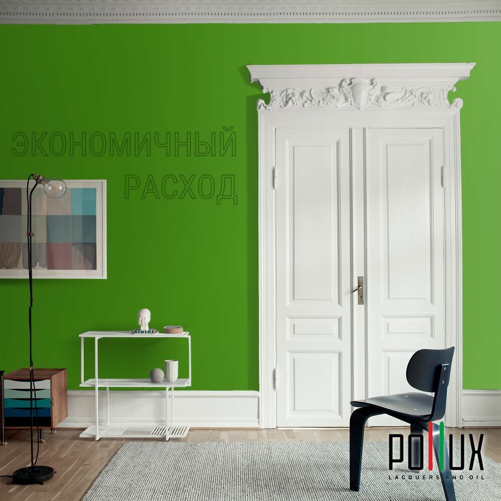 Краска моющаяся интерьерная для стен и потолков, Pollux INTERIOR без запаха, быстросохнущая, акриловая, матовое покрытие, цвет NCS S 1060-G30Y, 1л.