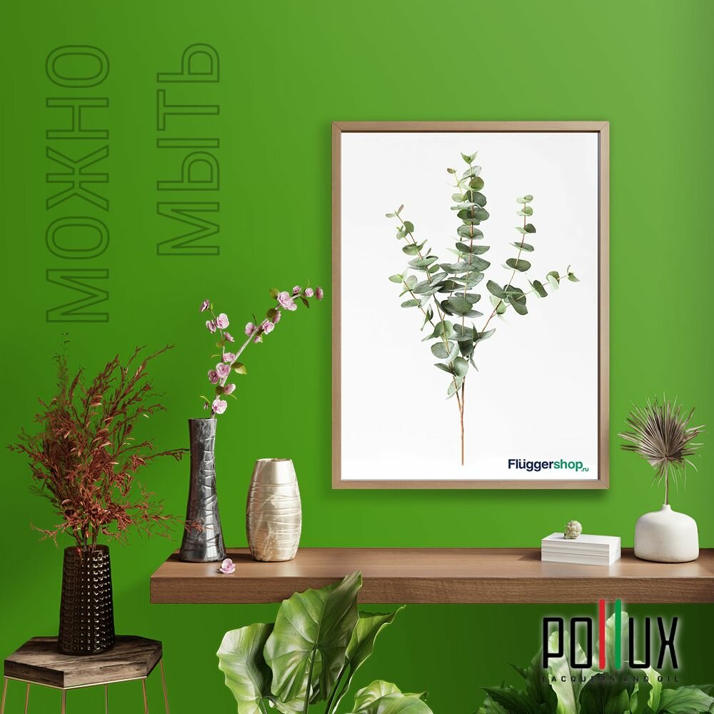 Краска моющаяся интерьерная для стен и потолков, Pollux INTERIOR без запаха, быстросохнущая, акриловая, матовое покрытие, цвет NCS S 6030-G30Y, 1л.