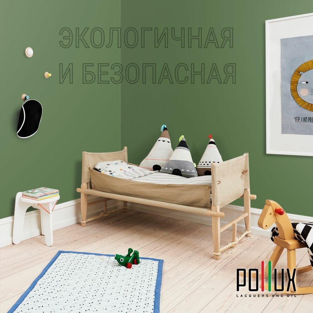 Краска моющаяся интерьерная для стен и потолков, Pollux INTERIOR без запаха, быстросохнущая, акриловая, матовое покрытие, цвет NCS S 5540-G30Y, 1л.