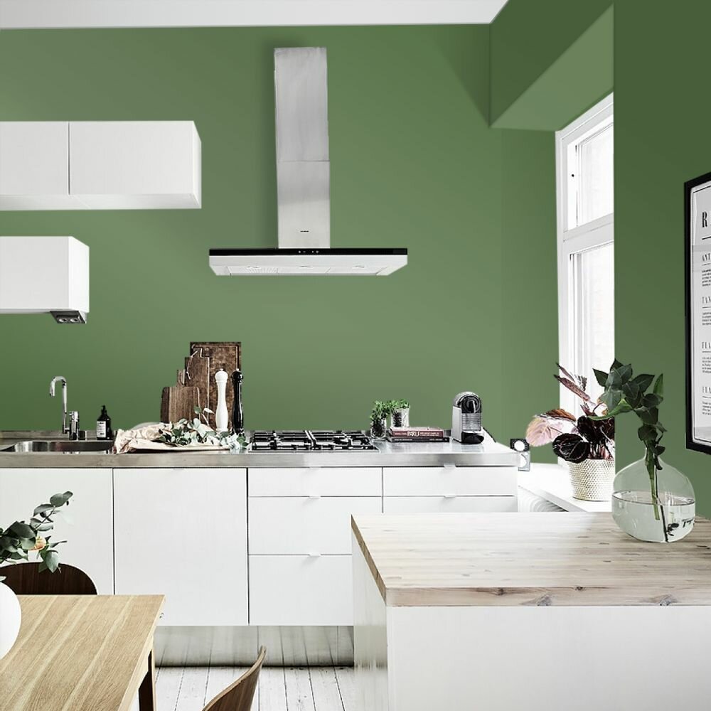 Краска моющаяся интерьерная для стен и потолков, Pollux INTERIOR без запаха, быстросохнущая, акриловая, матовое покрытие, цвет NCS S 4050-G30Y, 1л.