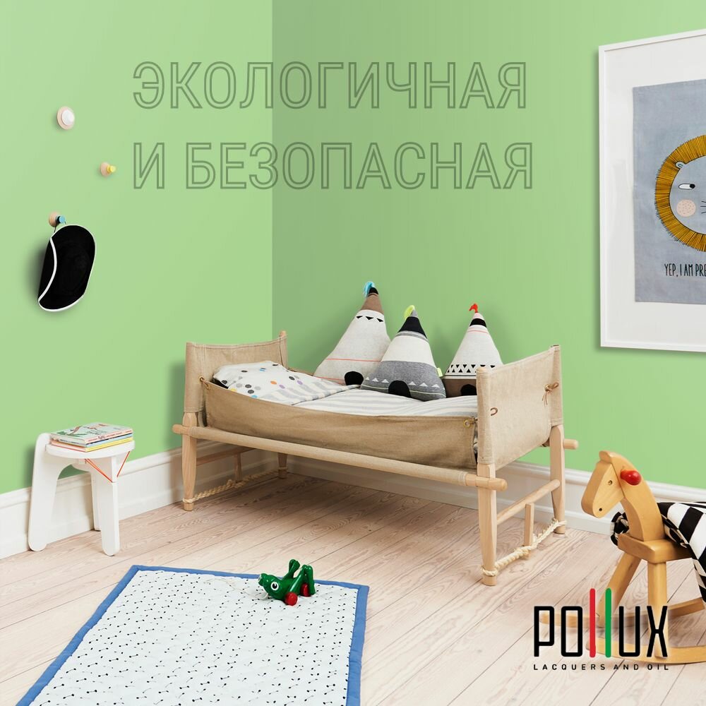 Краска моющаяся интерьерная для стен и потолков, Pollux INTERIOR без запаха, быстросохнущая, акриловая, матовое покрытие, цвет NCS S 6010-G10Y, 1л.
