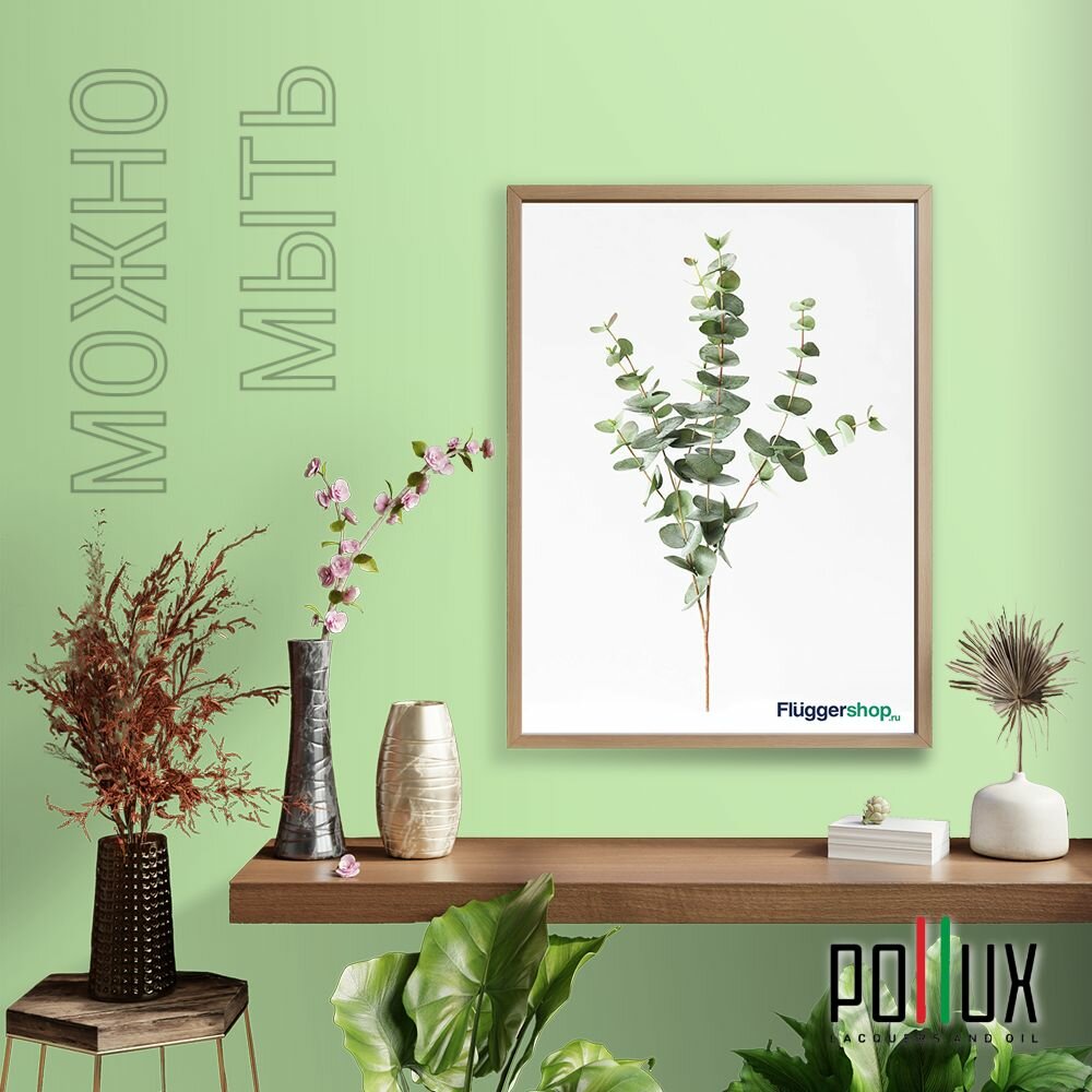 Краска моющаяся интерьерная для стен и потолков, Pollux INTERIOR без запаха, быстросохнущая, акриловая, матовое покрытие, цвет NCS S 5540-G30Y, 1л.