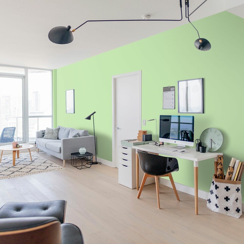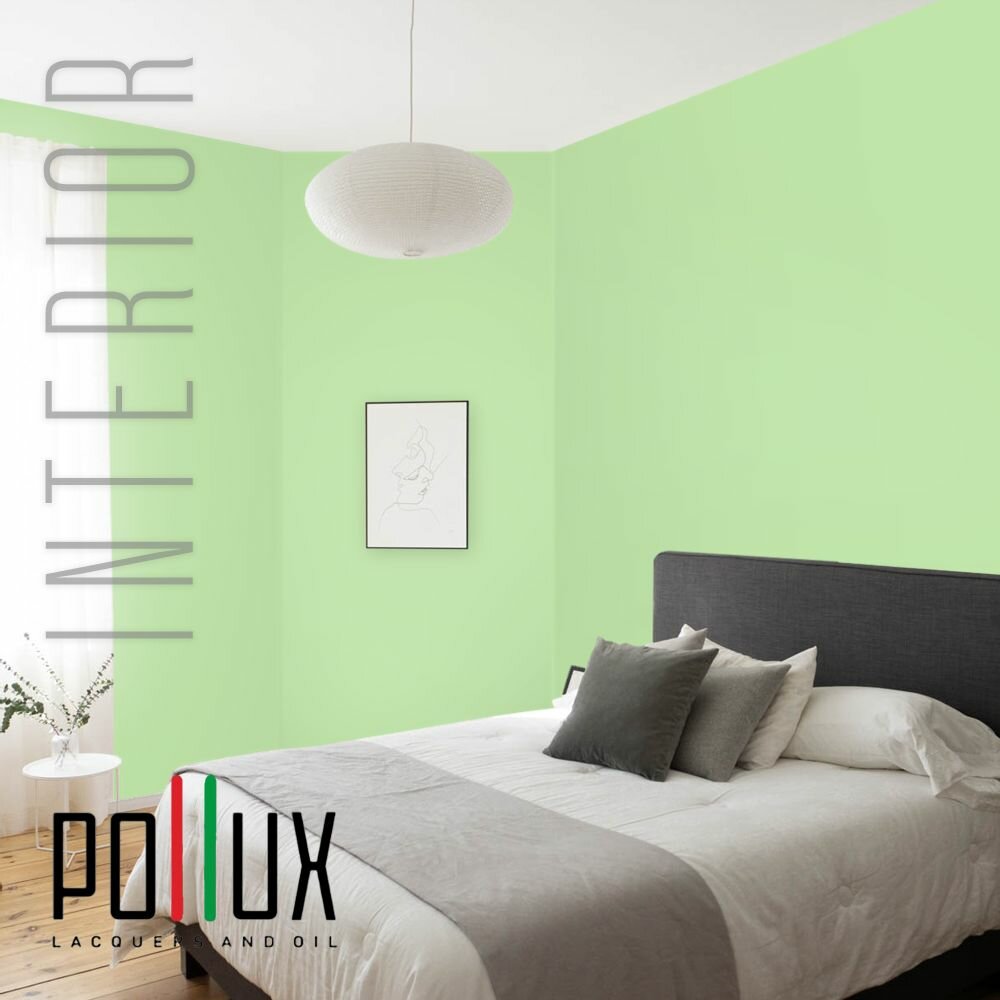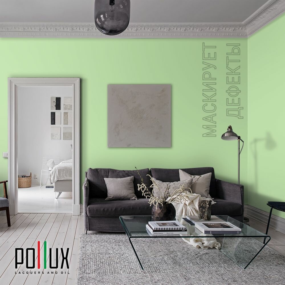 Краска моющаяся интерьерная для стен и потолков, Pollux INTERIOR без запаха, быстросохнущая, акриловая, матовое покрытие, цвет NCS S 6030-G30Y, 1л.