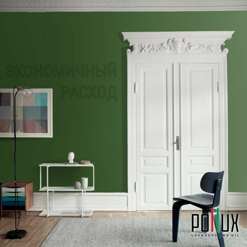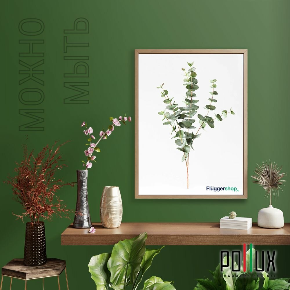 Краска моющаяся интерьерная для стен и потолков, Pollux INTERIOR без запаха, быстросохнущая, акриловая, матовое покрытие, цвет NCS S 5540-G30Y, 1л.