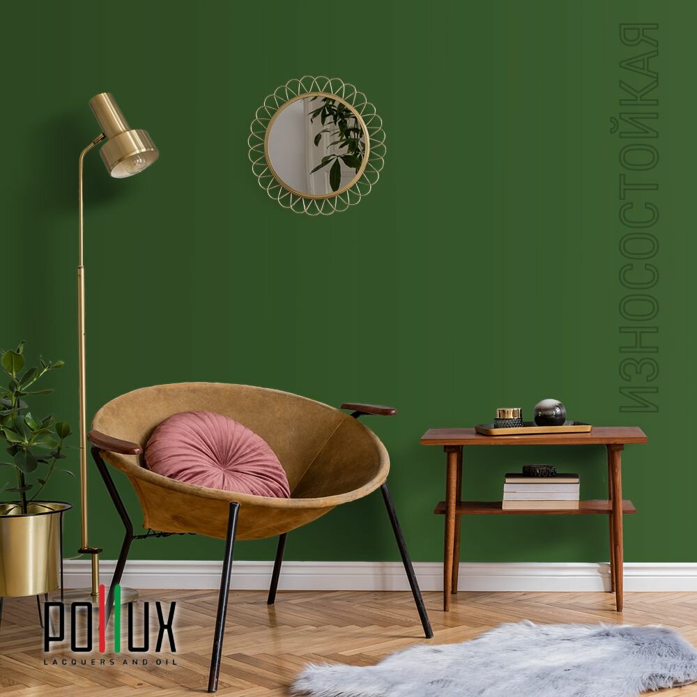 Краска моющаяся интерьерная для стен и потолков, Pollux INTERIOR без запаха, быстросохнущая, акриловая, матовое покрытие, цвет NCS S 6030-G30Y, 1л.