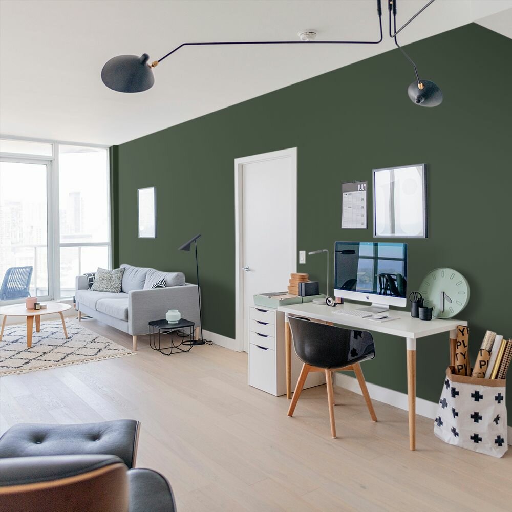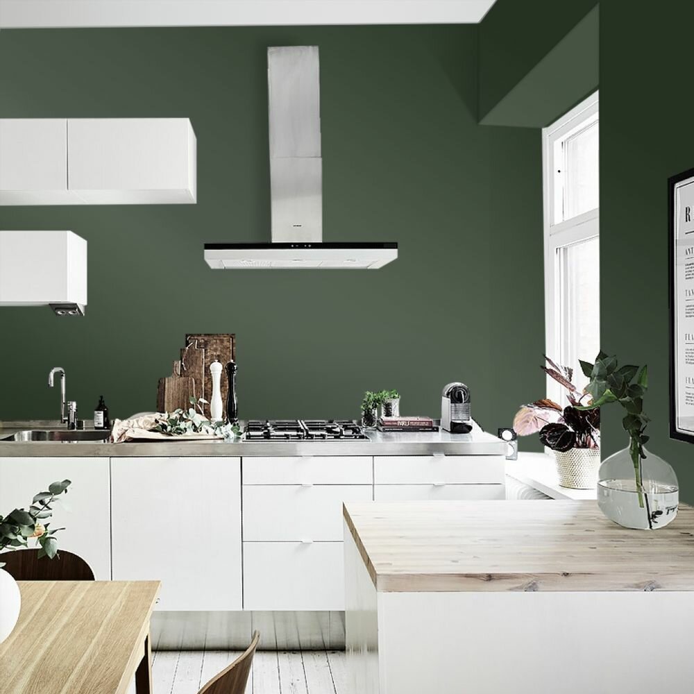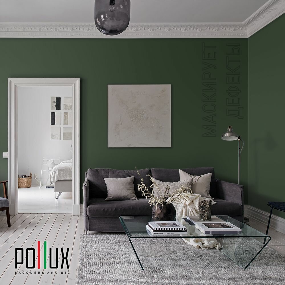 Краска моющаяся интерьерная для стен и потолков, Pollux INTERIOR без запаха, быстросохнущая, акриловая, матовое покрытие, цвет NCS S 4050-G30Y, 1л.