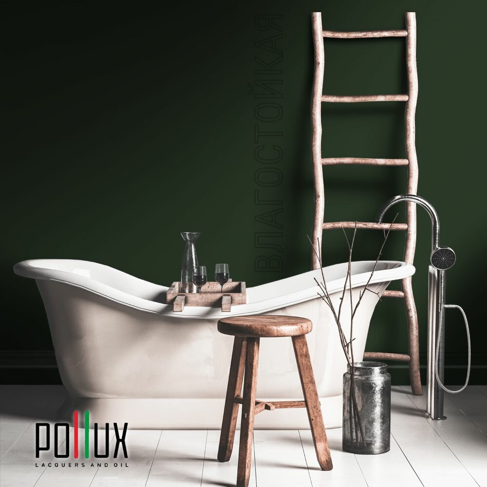 Краска моющаяся интерьерная для стен и потолков, Pollux INTERIOR без запаха, быстросохнущая, акриловая, матовое покрытие, цвет NCS S 8010-G30Y, 1л.