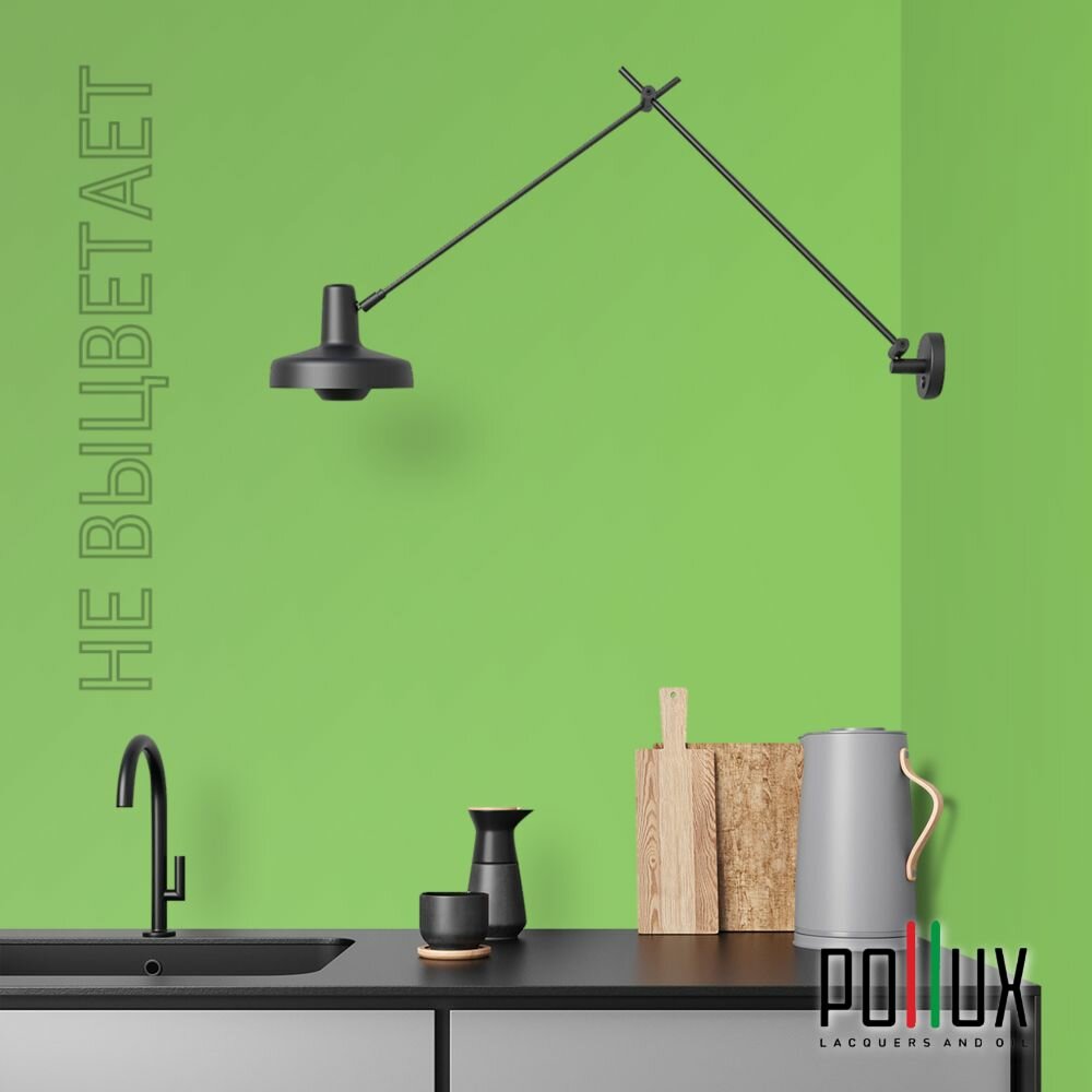 Краска моющаяся интерьерная для стен и потолков, Pollux INTERIOR без запаха, быстросохнущая, акриловая, матовое покрытие, цвет NCS S 6030-G30Y, 1л.