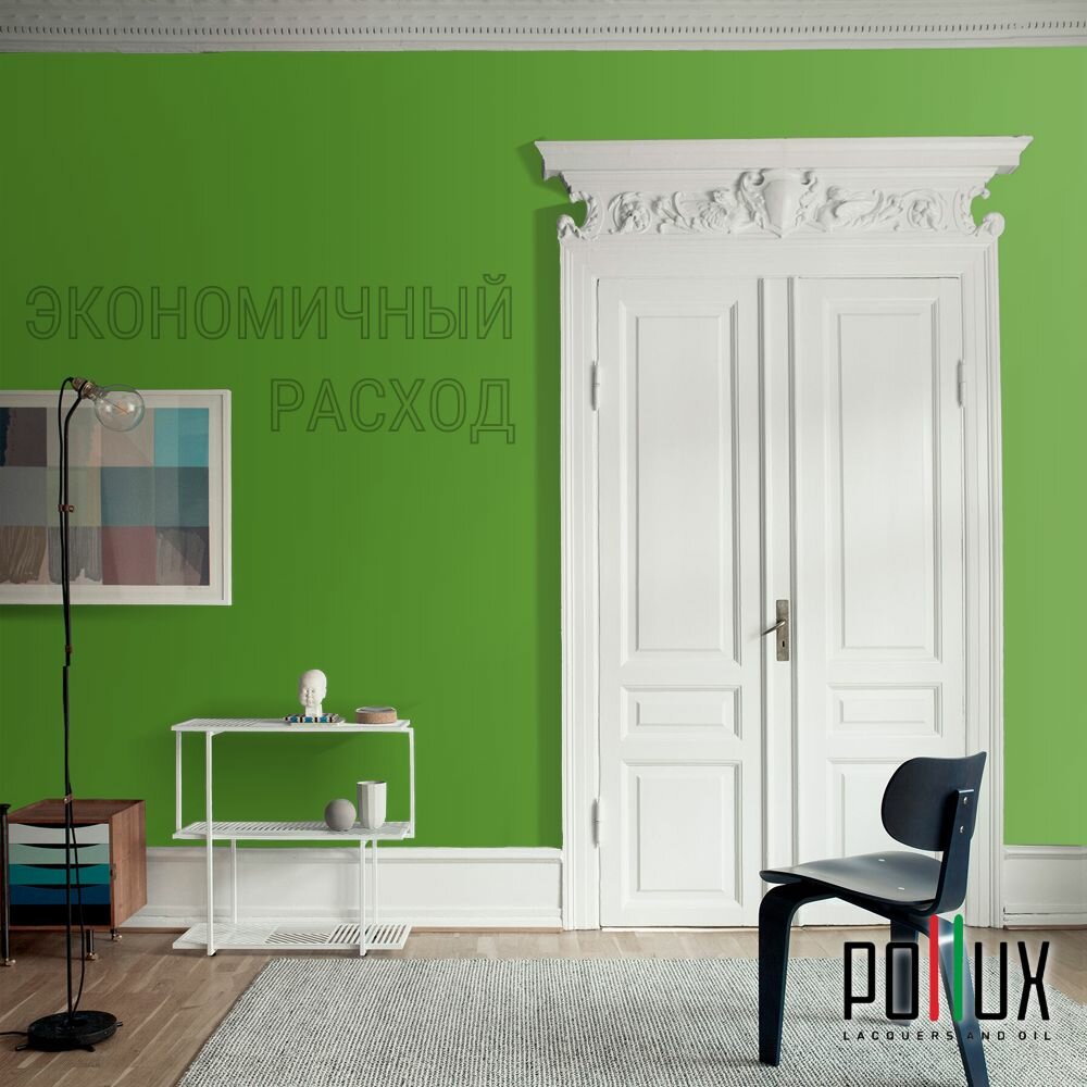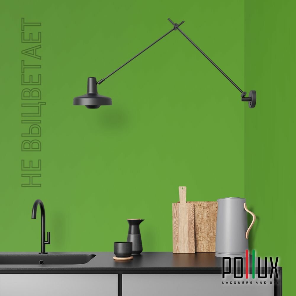 Краска моющаяся интерьерная для стен и потолков, Pollux INTERIOR без запаха, быстросохнущая, акриловая, матовое покрытие, цвет NCS S 6030-G30Y, 1л.