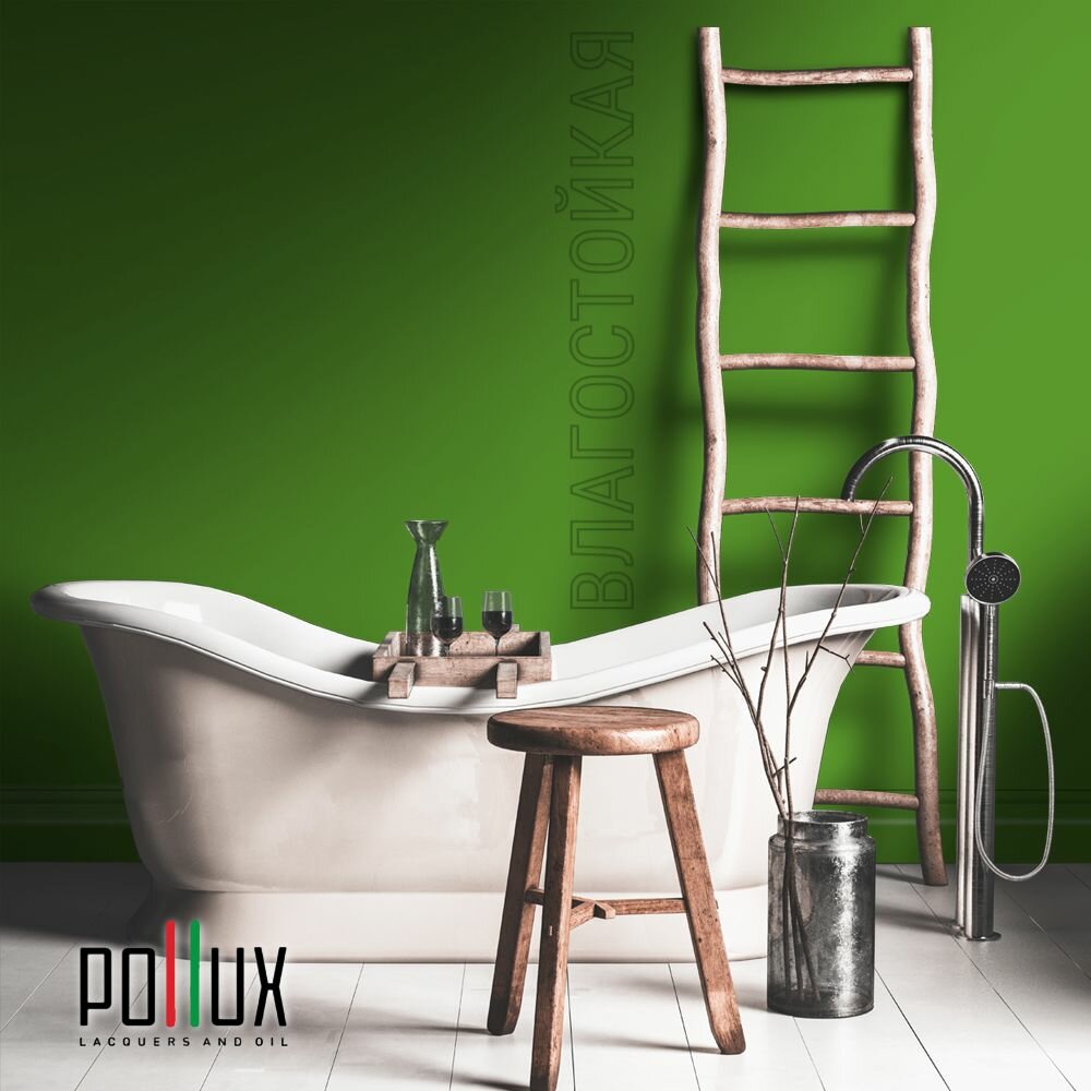 Краска моющаяся интерьерная для стен и потолков, Pollux INTERIOR без запаха, быстросохнущая, акриловая, матовое покрытие, цвет NCS S 2040-G30Y, 1л.