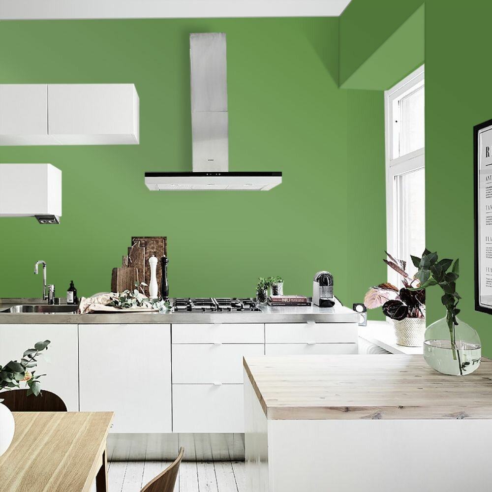 Краска моющаяся интерьерная для стен и потолков, Pollux INTERIOR без запаха, быстросохнущая, акриловая, матовое покрытие, цвет NCS S 3560-G30Y, 1л.