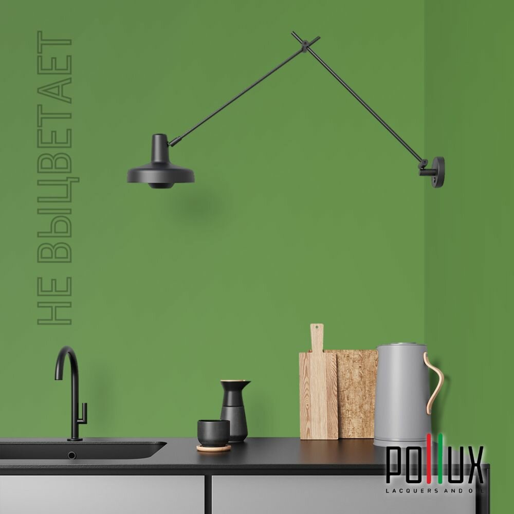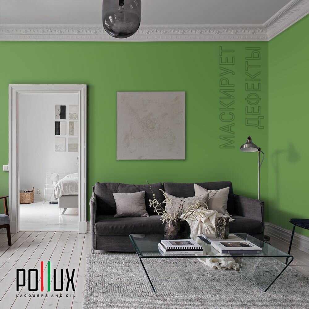 Краска моющаяся интерьерная для стен и потолков, Pollux INTERIOR без запаха, быстросохнущая, акриловая, матовое покрытие, цвет NCS S 6030-G30Y, 1л.