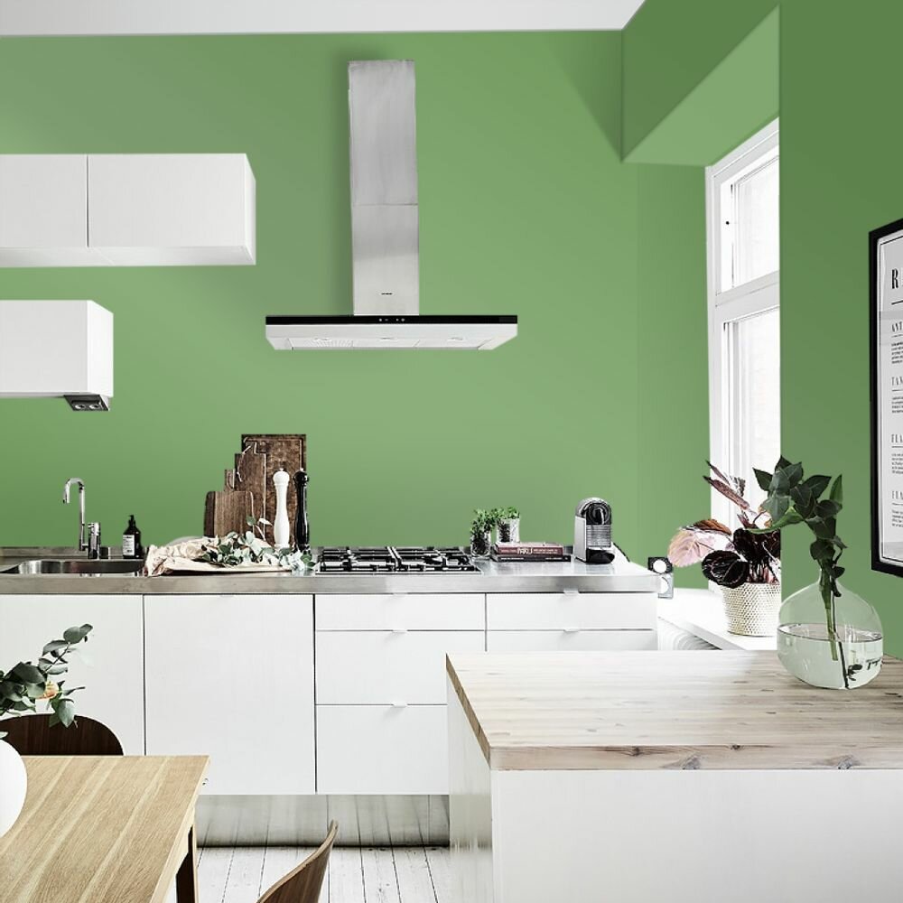 Краска моющаяся интерьерная для стен и потолков, Pollux INTERIOR без запаха, быстросохнущая, акриловая, матовое покрытие, цвет NCS S 3560-G30Y, 1л.