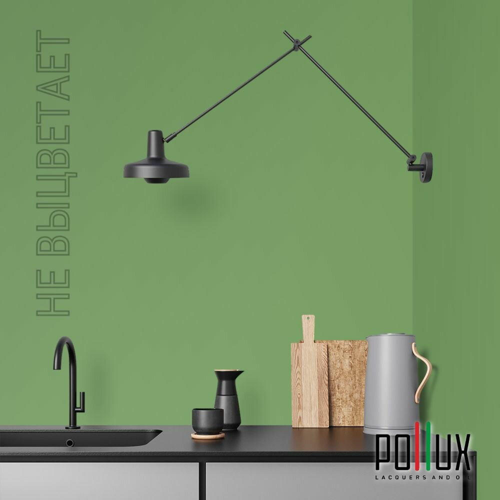 Краска моющаяся интерьерная для стен и потолков, Pollux INTERIOR без запаха, быстросохнущая, акриловая, матовое покрытие, цвет NCS S 6030-G30Y, 1л.
