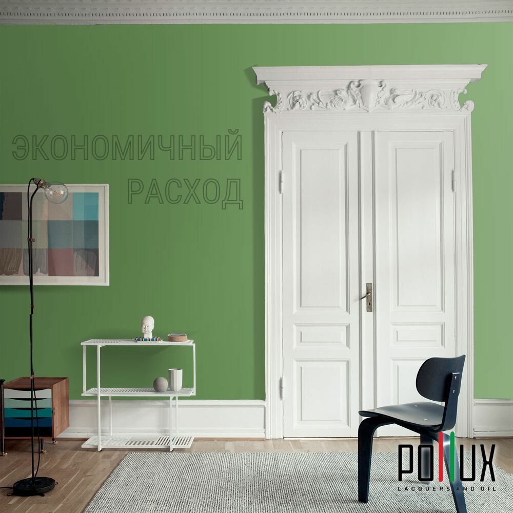 Краска моющаяся интерьерная для стен и потолков, Pollux INTERIOR без запаха, быстросохнущая, акриловая, матовое покрытие, цвет NCS S 1040-G30Y, 1л.
