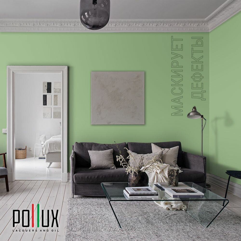 Краска моющаяся интерьерная для стен и потолков, Pollux INTERIOR без запаха, быстросохнущая, акриловая, матовое покрытие, цвет NCS S 4030-G30Y, 1л.