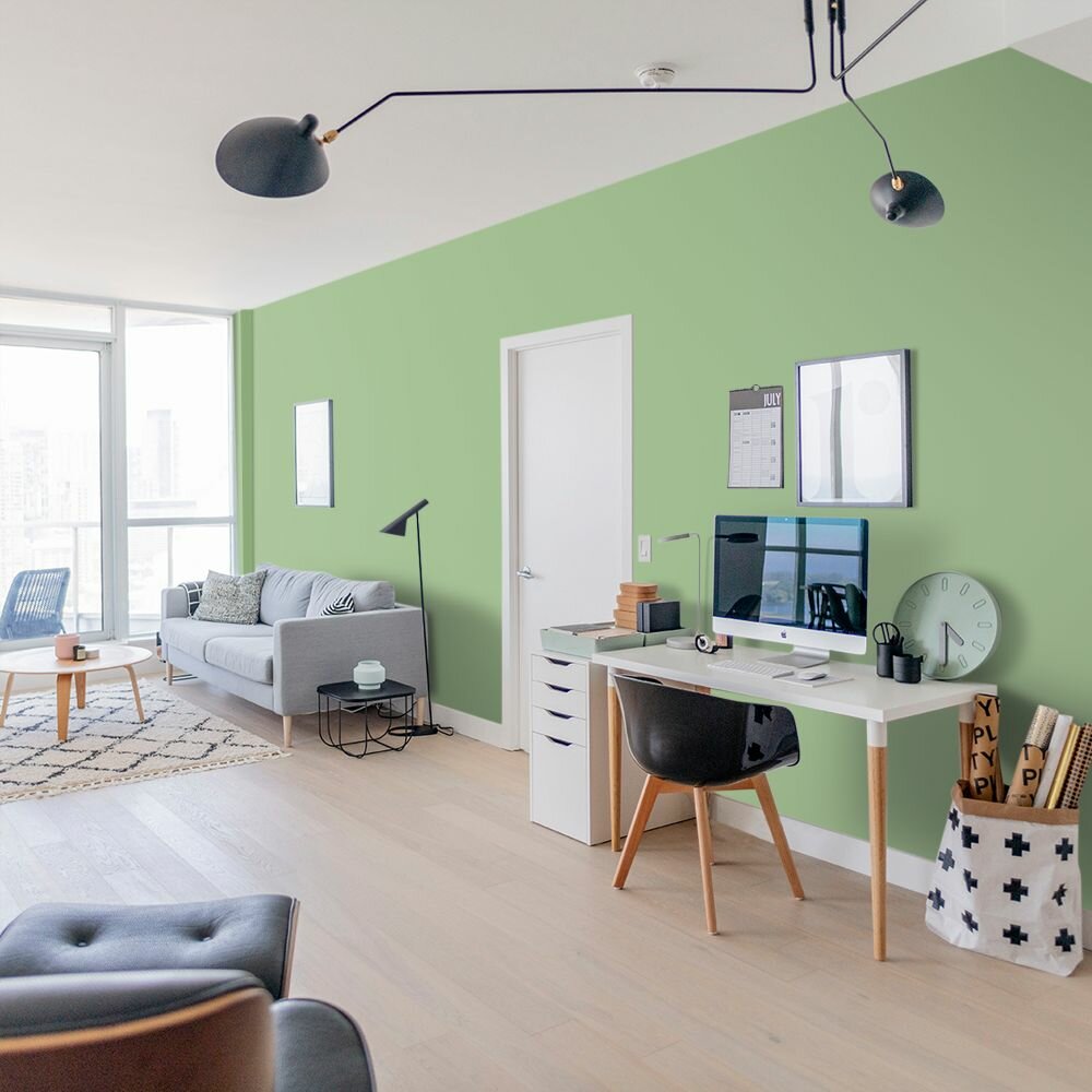 Краска моющаяся интерьерная для стен и потолков, Pollux INTERIOR без запаха, быстросохнущая, акриловая, матовое покрытие, цвет NCS S 6020-G30Y, 1л.