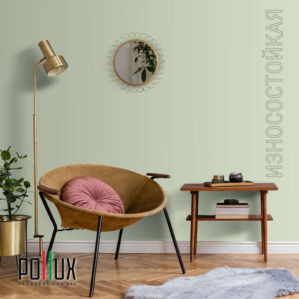 Краска моющаяся интерьерная для стен и потолков, Pollux INTERIOR без запаха, быстросохнущая, акриловая, матовое покрытие, цвет NCS S 6030-G30Y, 1л.